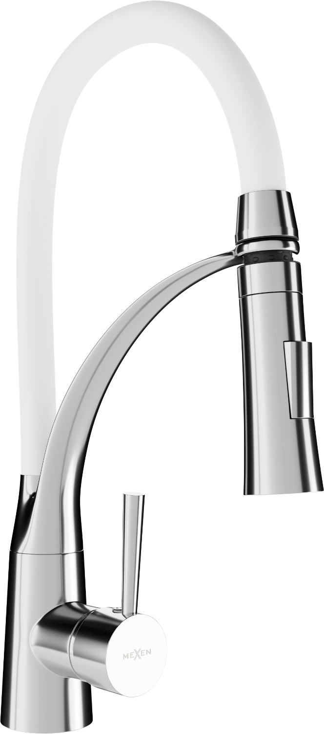 Baterie se silikonovou výlevkou a mosaznou podpěrou jsou praktickým řešením v kuchyni. Jejich pružnost umožňuje otočení o 360°, což výrazně usnadňuje oplachování nádobí, čištění dřezu a naplnění vázy nebo hrnce vodou.