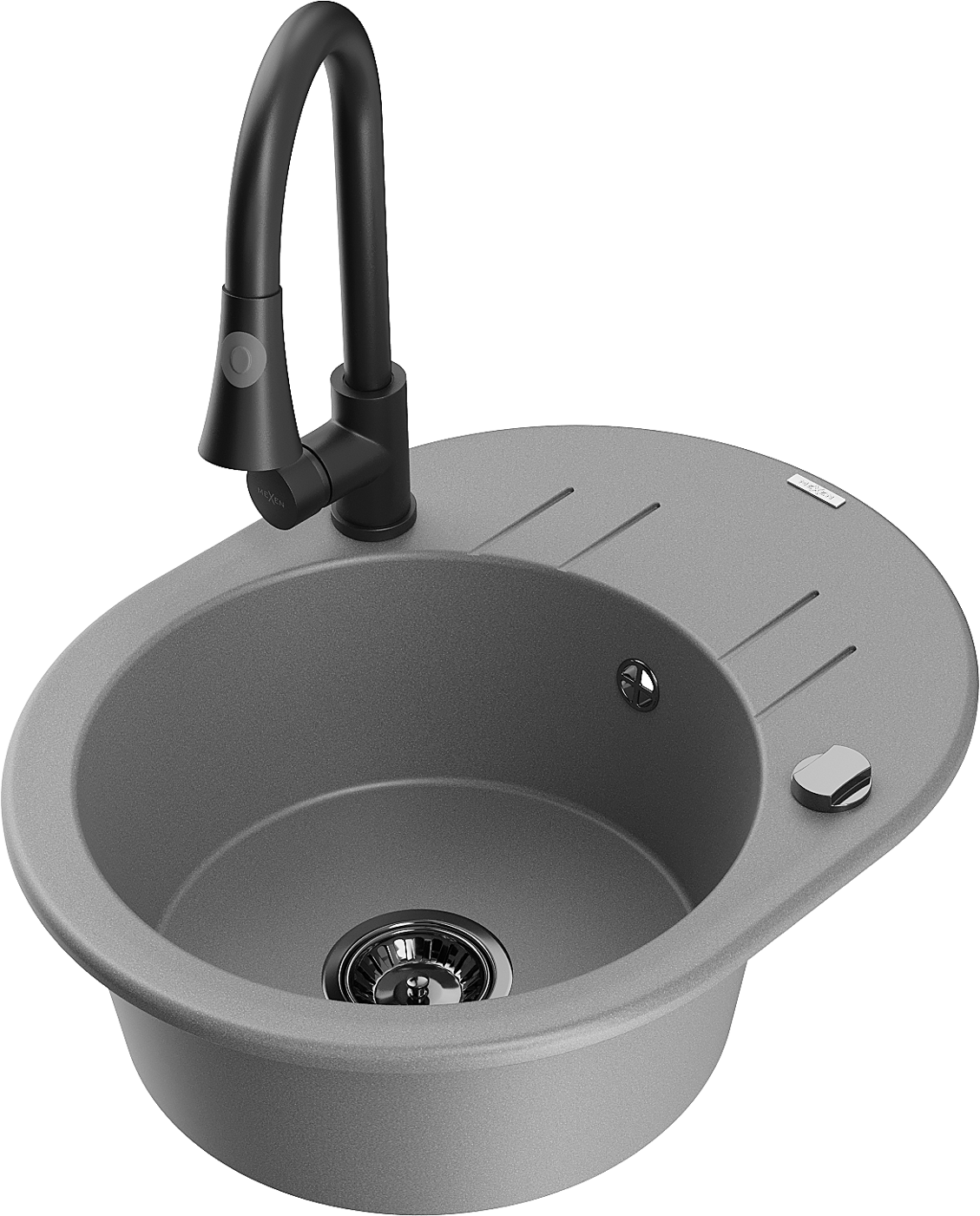 Mexen Kevin jednokomorový dřez s odkapávačem a kuchyňskou baterií Elia, šedý - 6517-71-670101-70-B