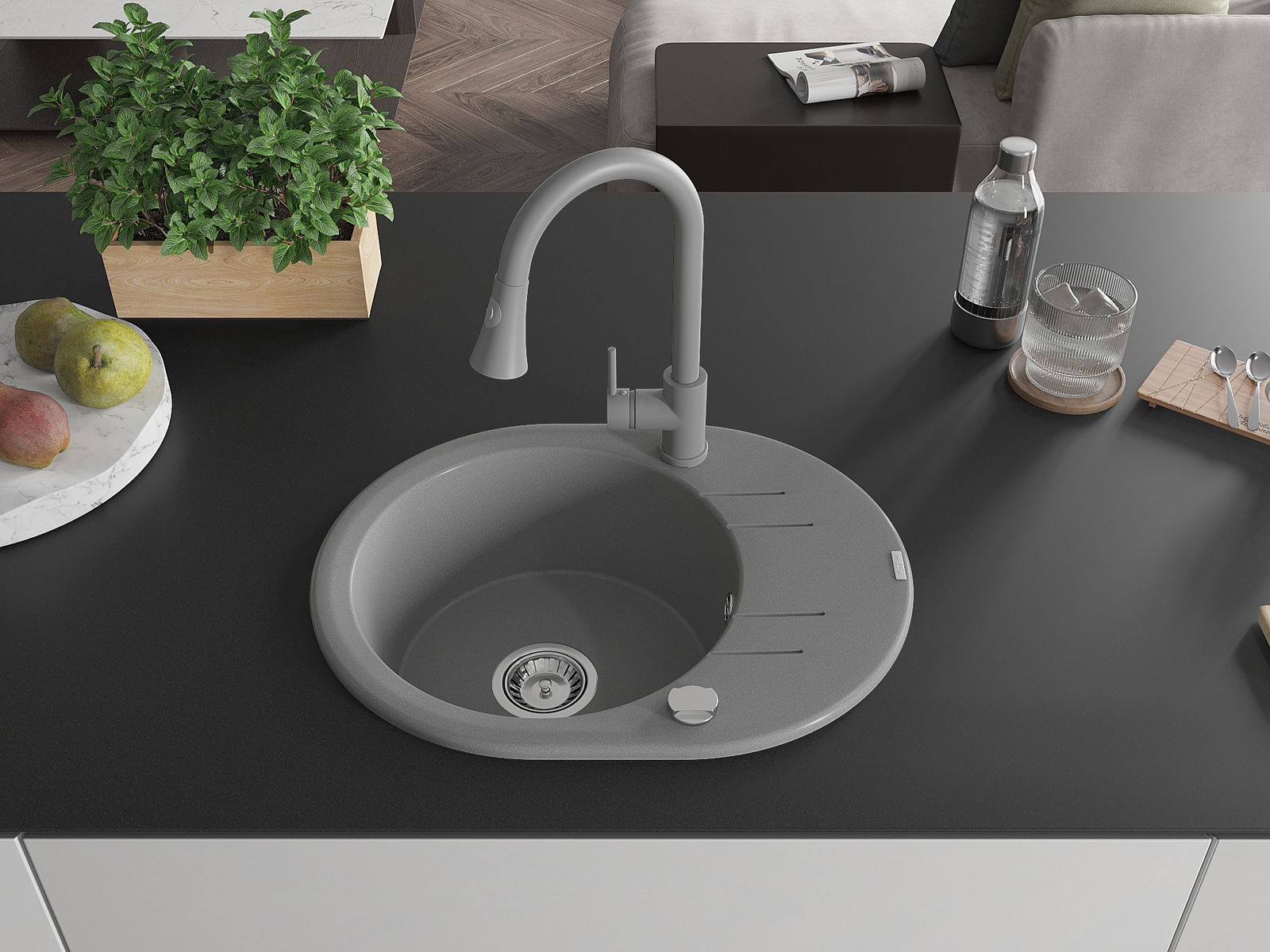 Dřez byl vyroben z vysoce kvalitního granitu. Představuje elegantní a především praktický doplněk každé kuchyně, bez ohledu na její styl. Vysoká kvalita a trvanlivost granitu zajišťují dlouholeté používání.