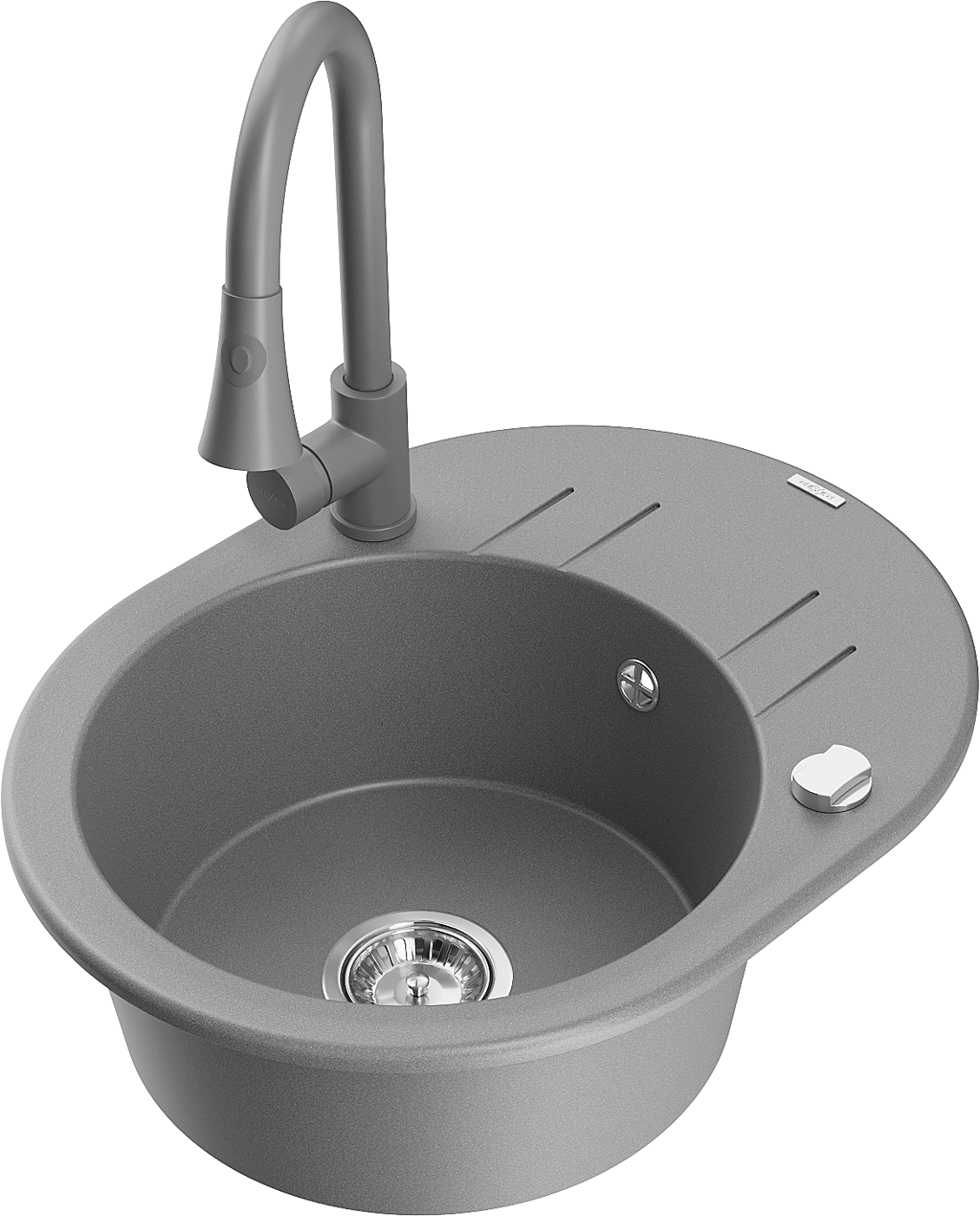 Mexen Kevin granitový dřez jednokomorový s odkapávačem a kuchyňskou baterií Elia, šedý - 6517-71-670101-71