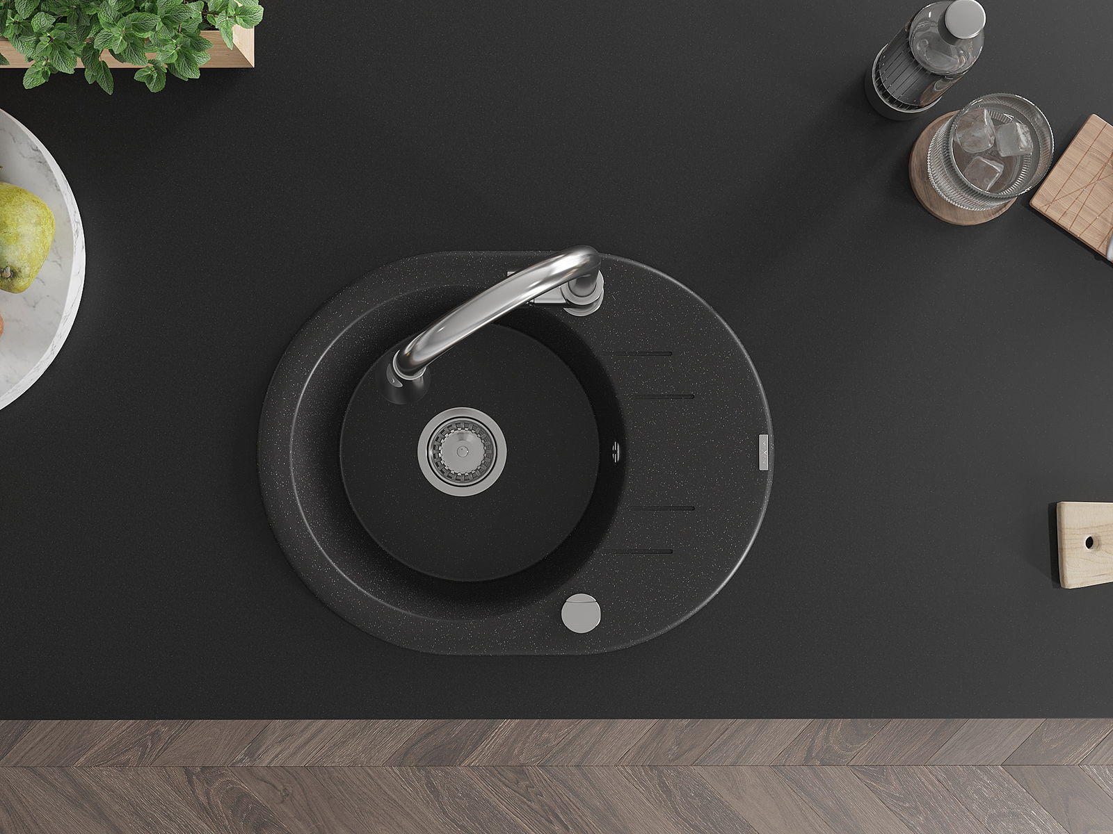Dřez byl vyroben z vysoce kvalitního granitu. Představuje elegantní a především praktický doplněk každé kuchyně, bez ohledu na její styl. Vysoká kvalita a trvanlivost granitu zajišťují dlouholeté používání.