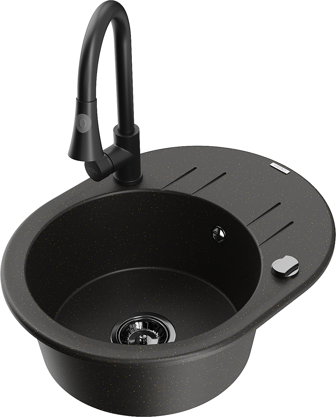 Mexen Kevin granitový dřez s odkapávačem a kuchyňskou baterií Elia, černý/zlatý metalík - 6517-75-670101-70-B
