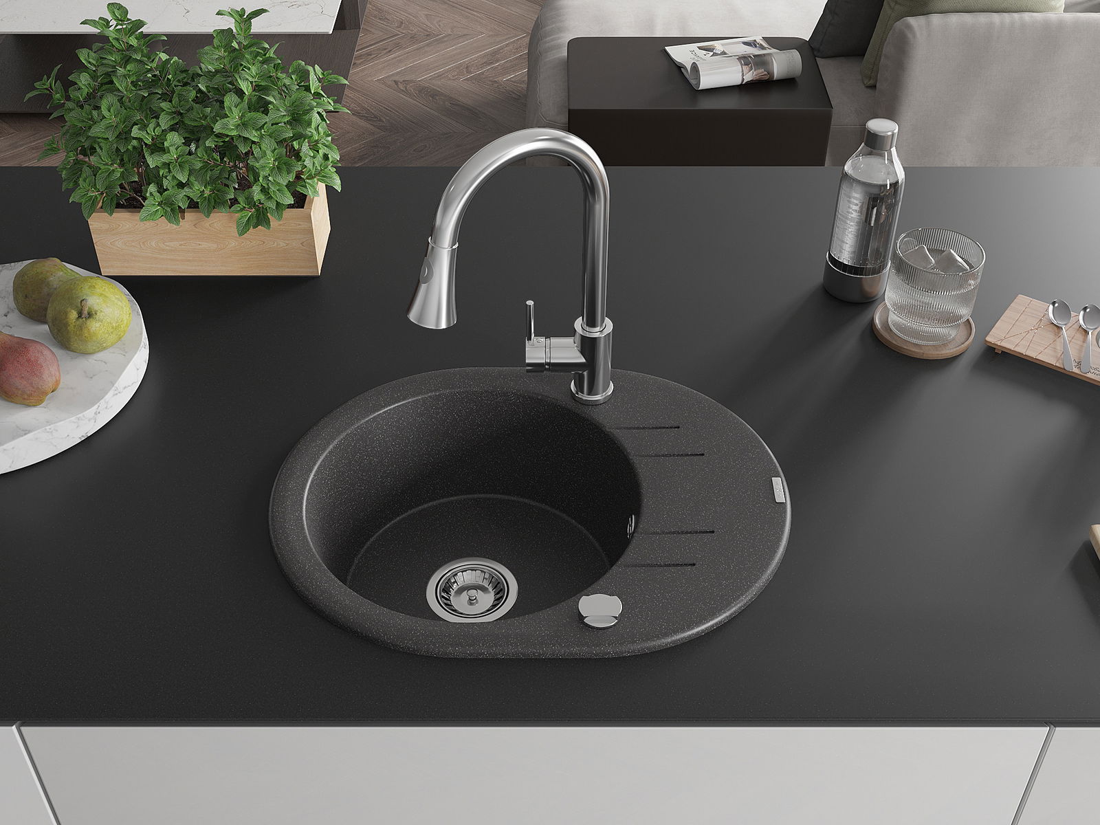 Dřez byl vyroben z vysoce kvalitního granitu. Představuje elegantní a především praktický doplněk každé kuchyně, bez ohledu na její styl. Vysoká kvalita a trvanlivost granitu zajišťují dlouholeté používání.