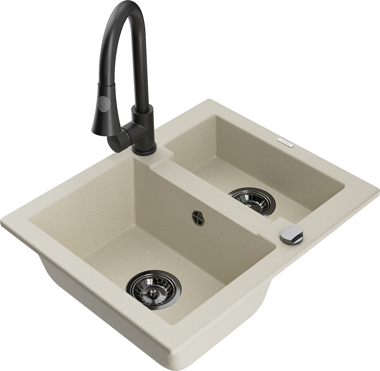 Mexen Carlos granitový dřez 1,5-komorový s kuchyňskou baterií Elia, béžový - 6518-69-670101-70