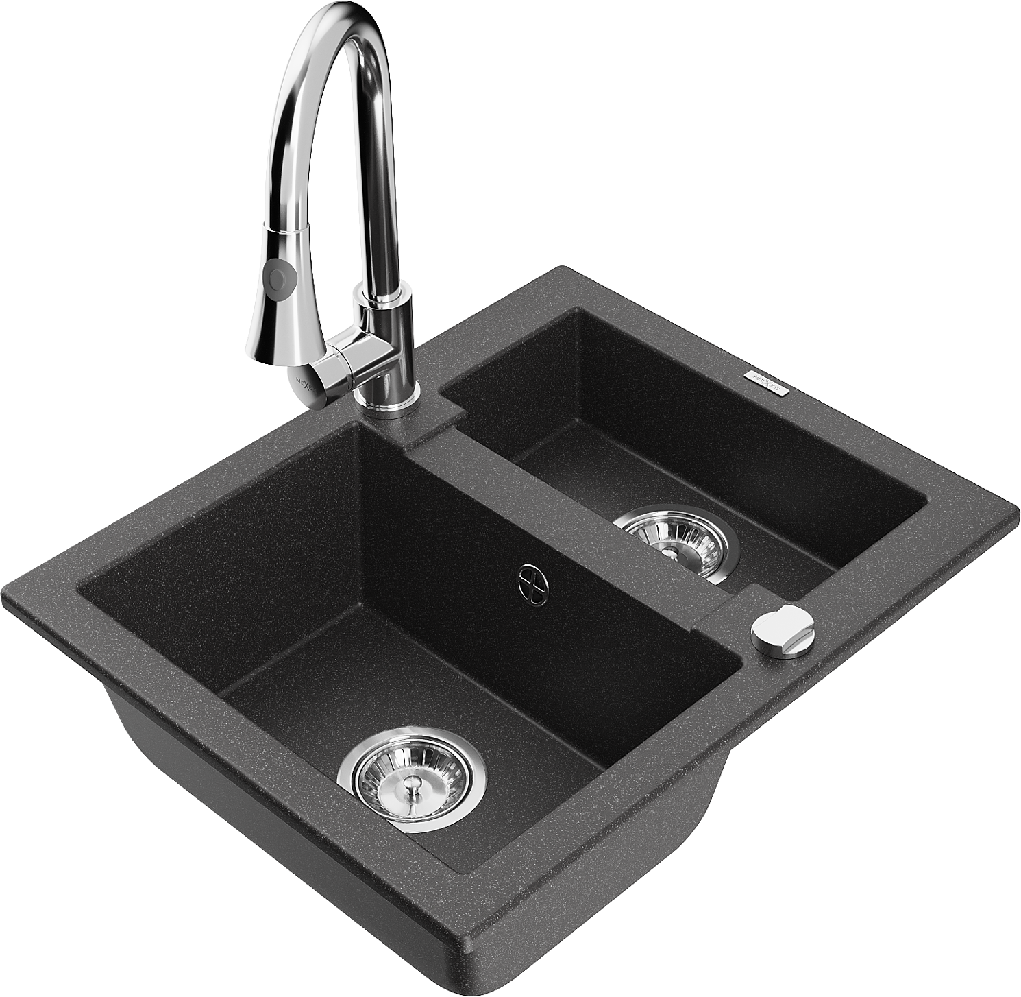 Mexen Carlos granitový dřez 1,5 komorový s kuchyňskou baterií Elia, černý skvrnitý - 6518-76-670101-00