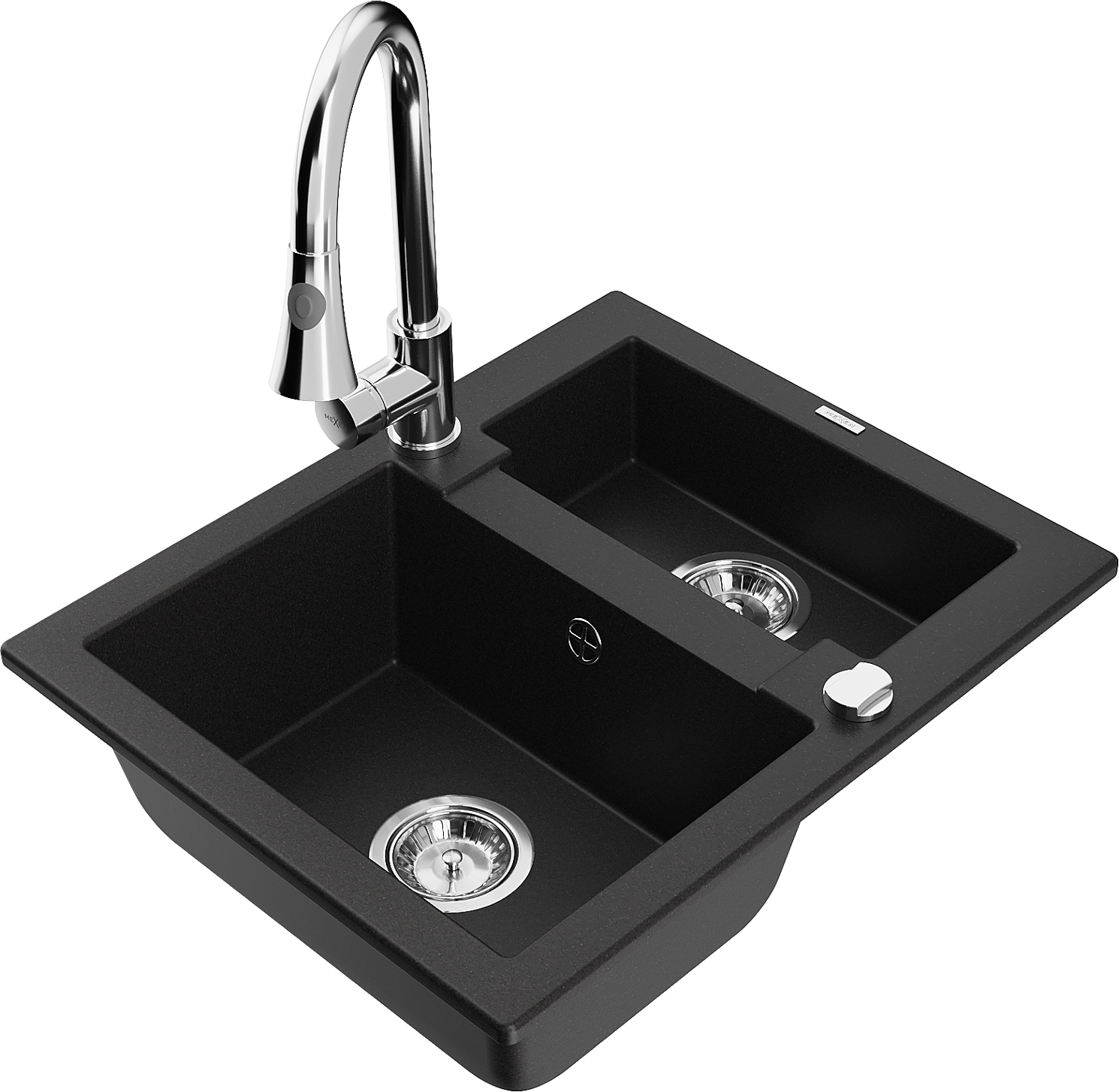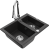 Mexen Carlos granitový dřez 1,5-komorový s kuchyňskou baterií Elia, černý - 6518-77-670101-00