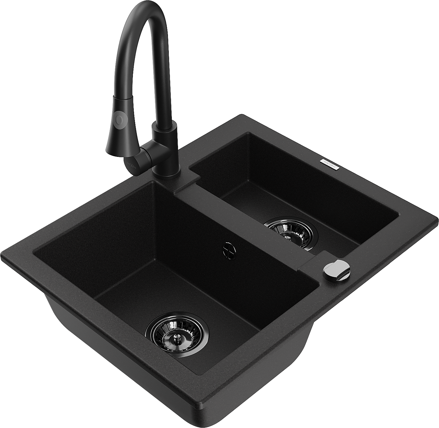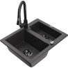 Mexen Carlos granitový dřez 1,5-komorový s kuchyňskou baterií Elia, černý - 6518-77-670101-70-B