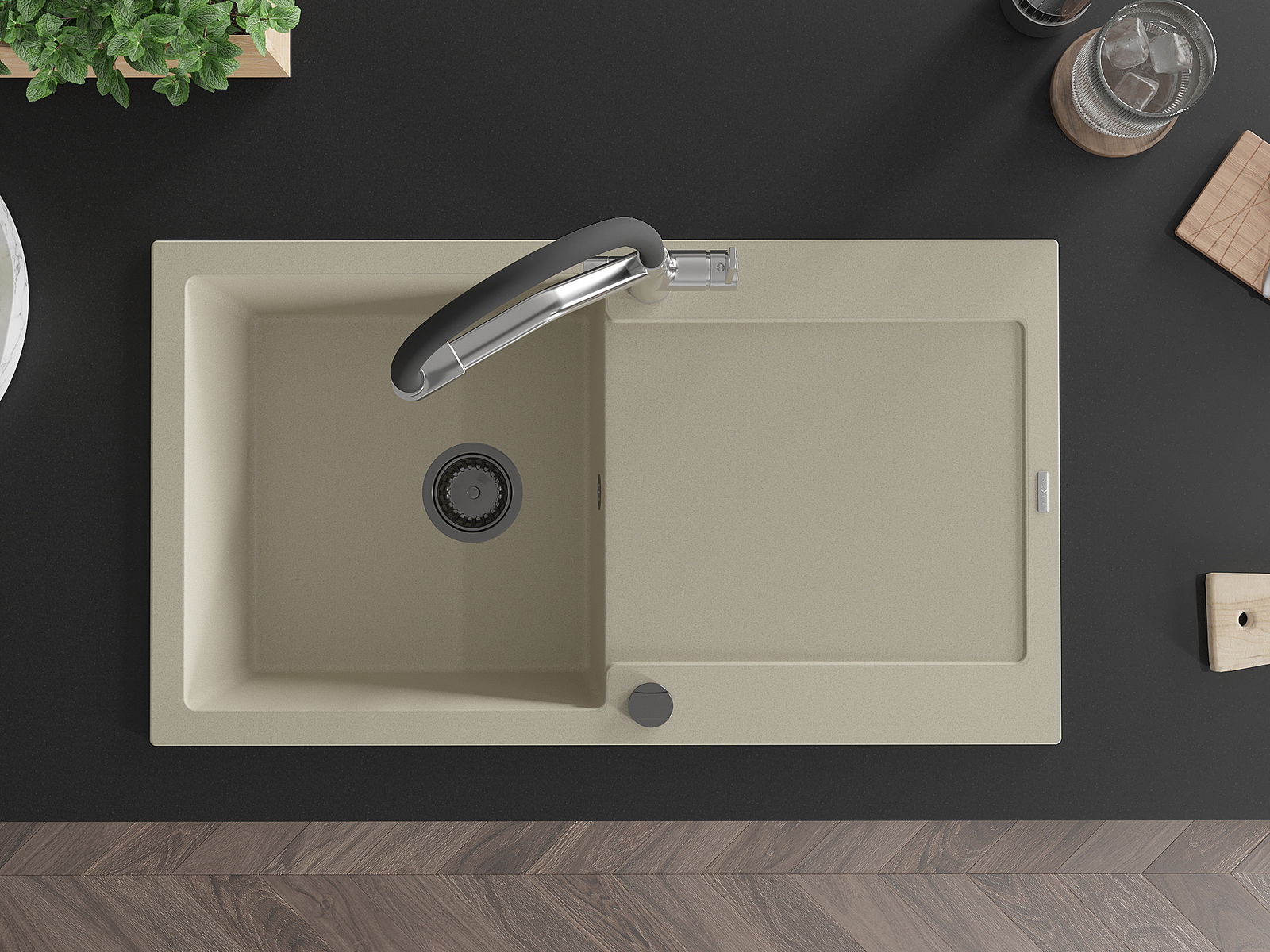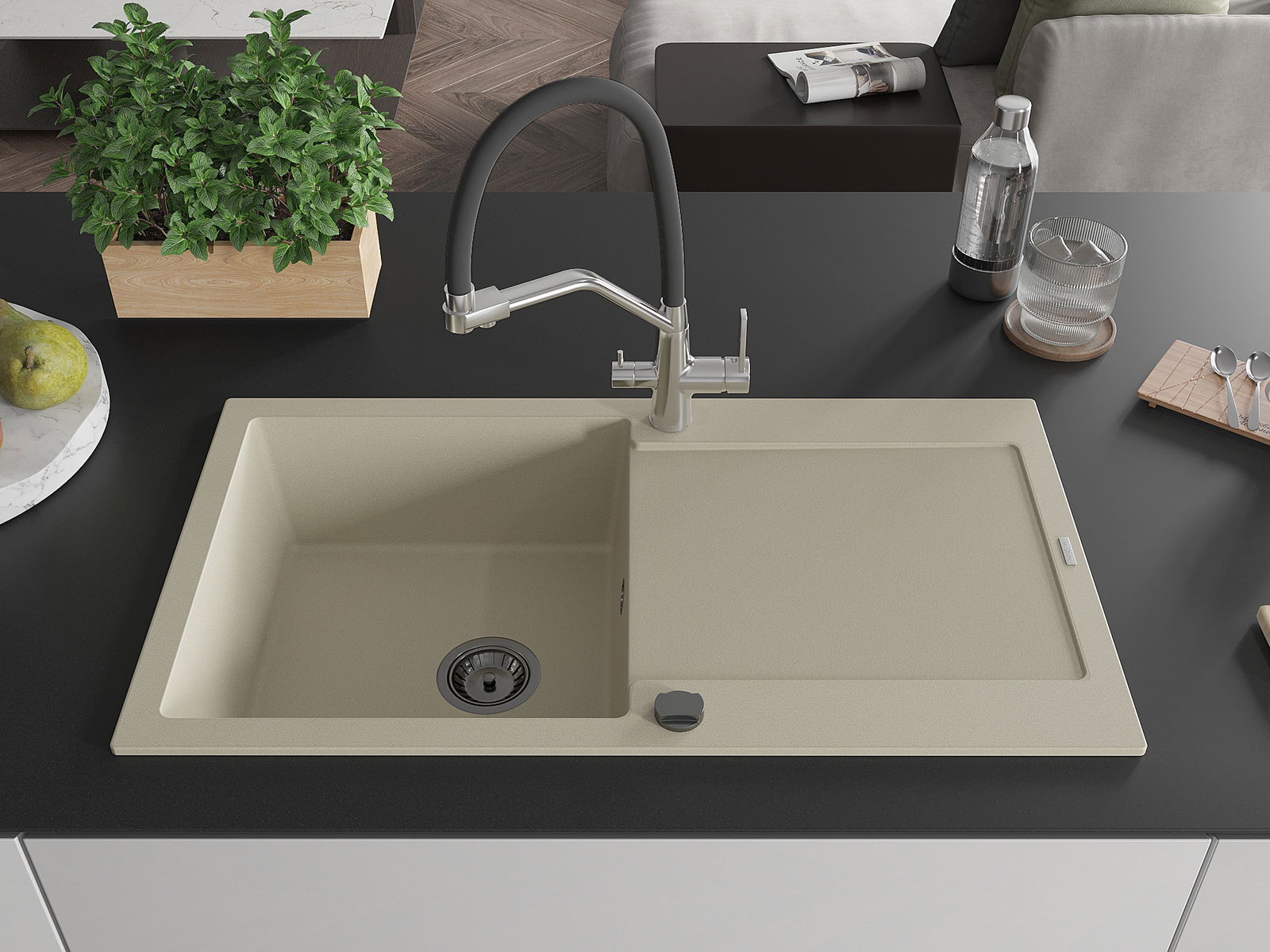 Dřez byl vyroben z vysoce kvalitního granitu. Představuje elegantní a především praktický doplněk každé kuchyně, bez ohledu na její styl. Vysoká kvalita a trvanlivost granitu zajišťují dlouholeté používání.