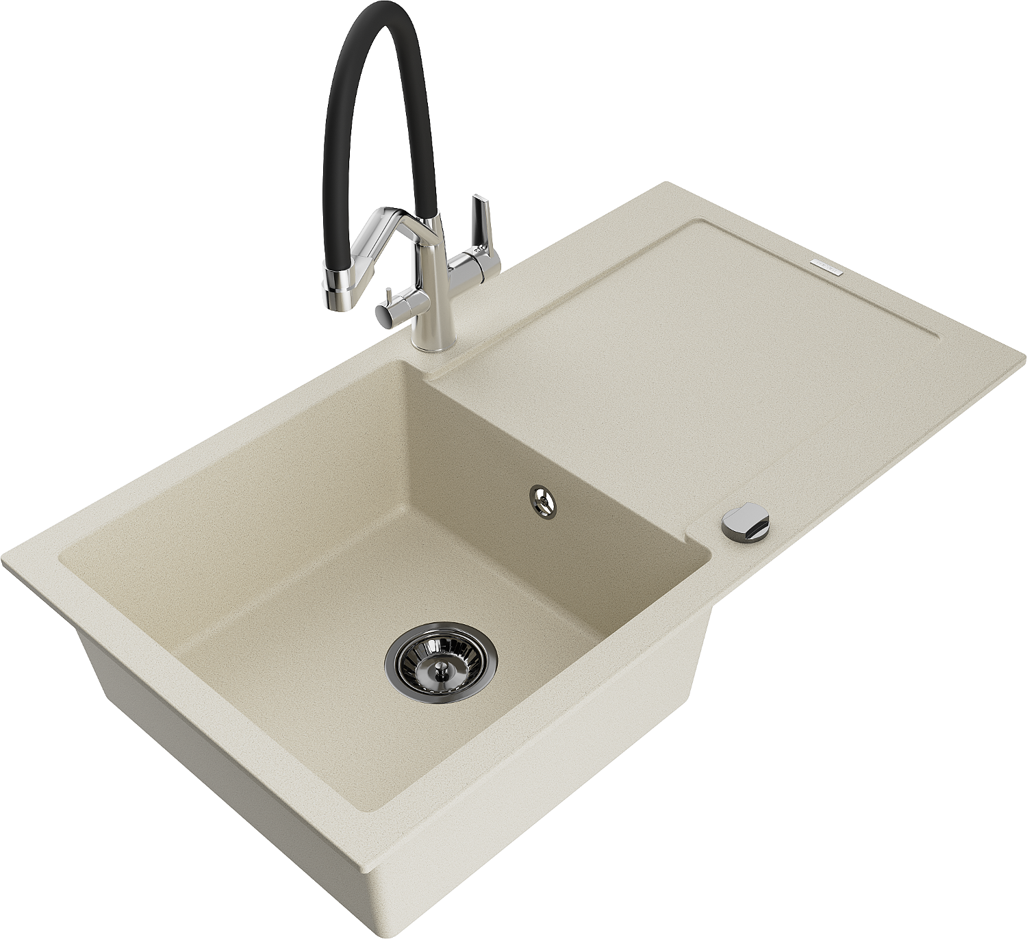 Povrch dřezu je odolný proti skvrnám a zabarvení, což usnadňuje jeho čištění a zachovává jeho barvu po dlouhou dobu používání. Estetický a praktický doplněk každé kuchyně.