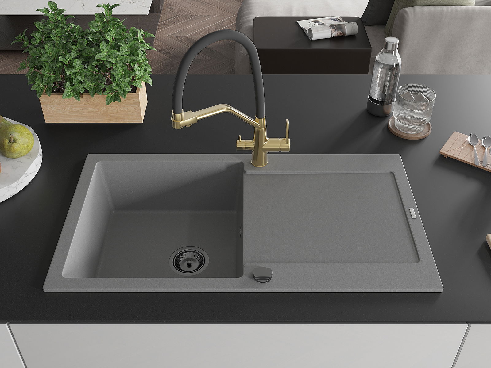 Dřez byl vyroben z vysoce kvalitního granitu. Představuje elegantní a především praktický doplněk každé kuchyně, bez ohledu na její styl. Vysoká kvalita a trvanlivost granitu zajišťují dlouholeté používání.