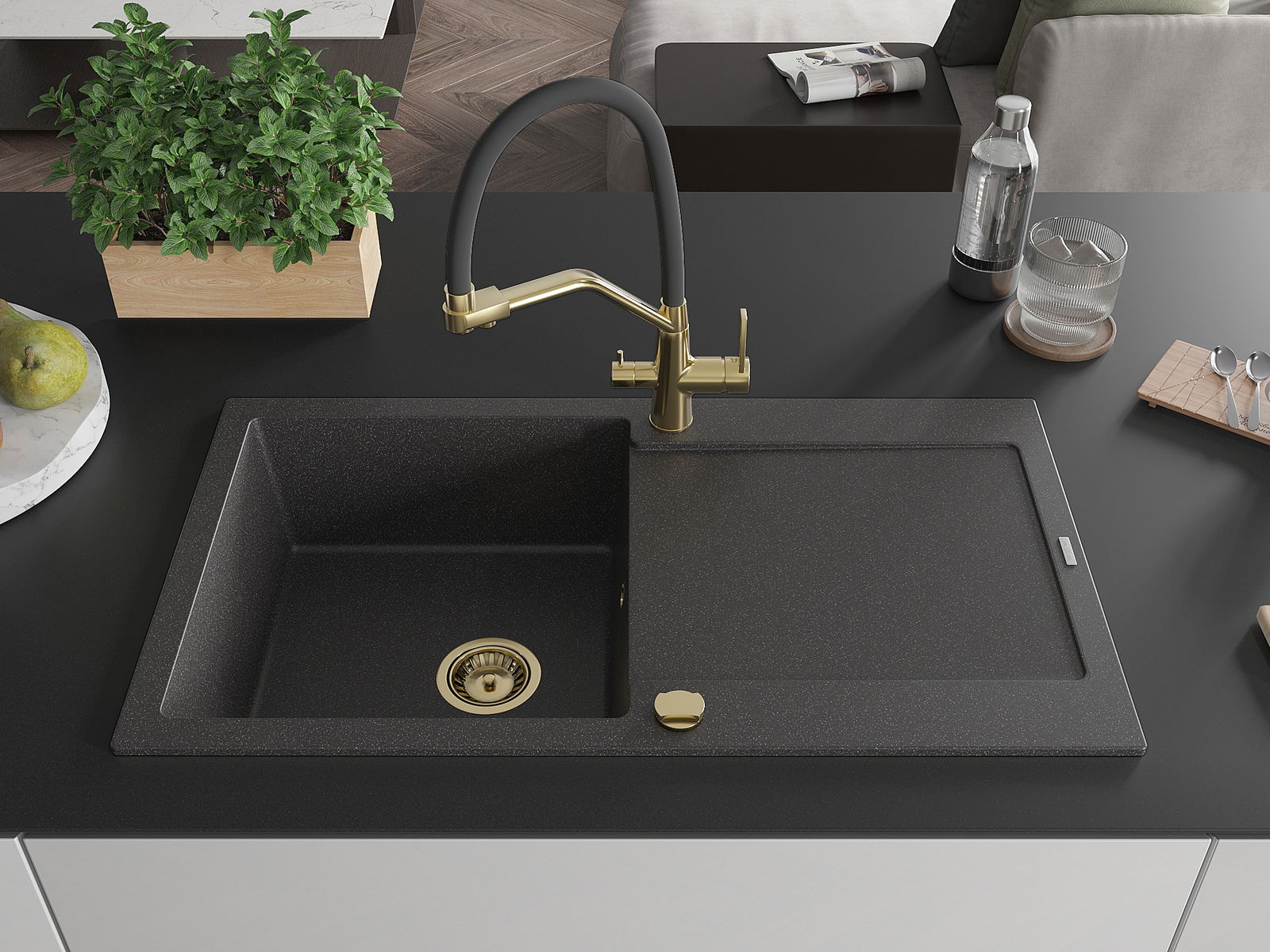 Dřez byl vyroben z vysoce kvalitního granitu. Představuje elegantní a především praktický doplněk každé kuchyně, bez ohledu na její styl. Vysoká kvalita a trvanlivost granitu zajišťují dlouholeté používání.