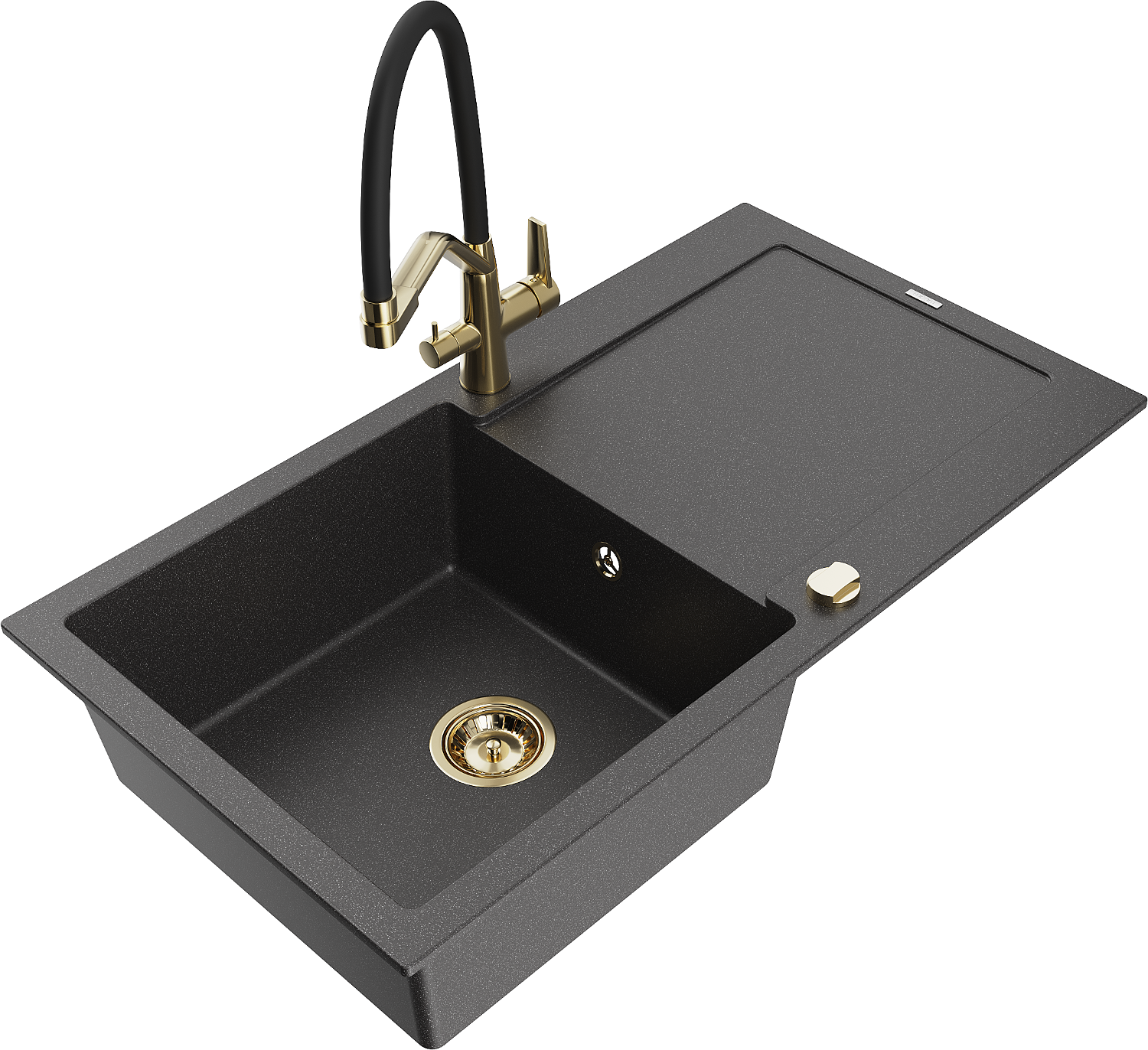 Mexen Leo granitový dřez 1-komorový s odkapávačem a kuchyňská baterie Duo, černý skvrnitý - 6501-76-671701-57-G