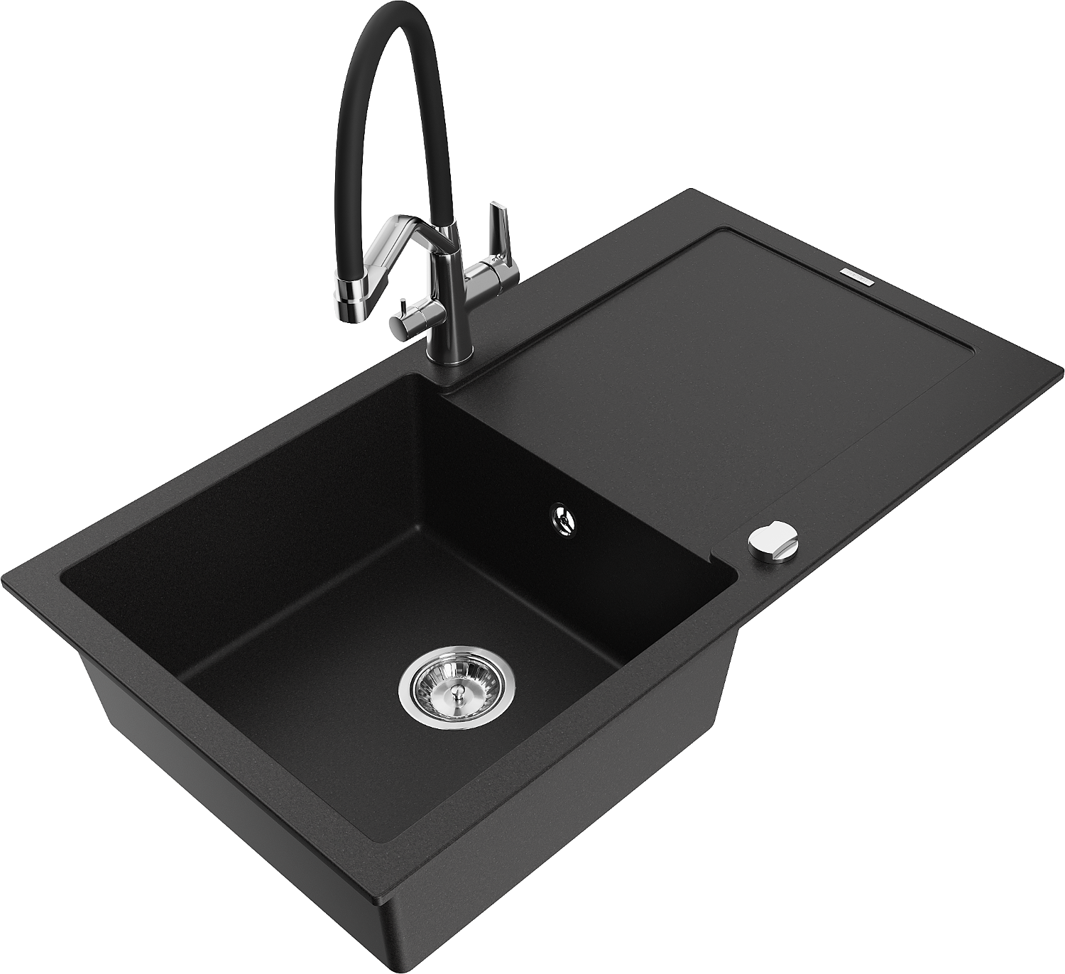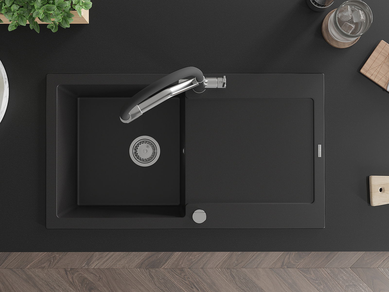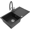 Mexen Leo granitový dřez s 1 komorou s odkapávačem a kuchyňskou baterií Duo, černý - 6501-77-671701-07