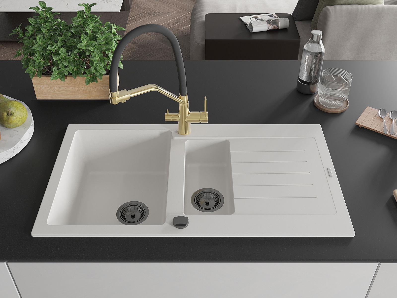 Dřez byl vyroben z vysoce kvalitního granitu. Představuje elegantní a především praktický doplněk každé kuchyně, bez ohledu na její styl. Vysoká kvalita a trvanlivost granitu zajišťují dlouholeté používání.