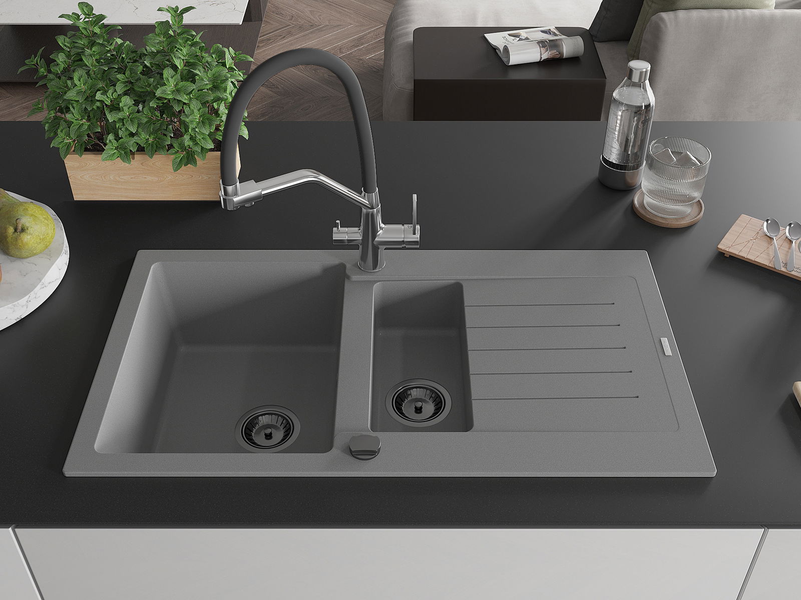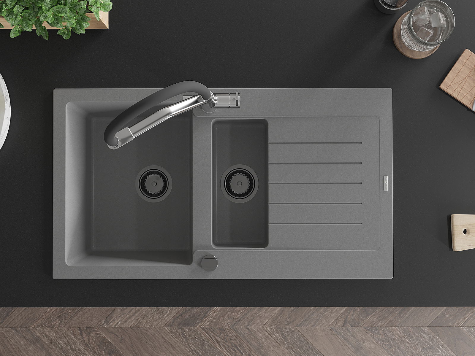 Dřez byl vyroben z vysoce kvalitního granitu. Představuje elegantní a především praktický doplněk každé kuchyně, bez ohledu na její styl. Vysoká kvalita a trvanlivost granitu zajišťují dlouholeté používání.