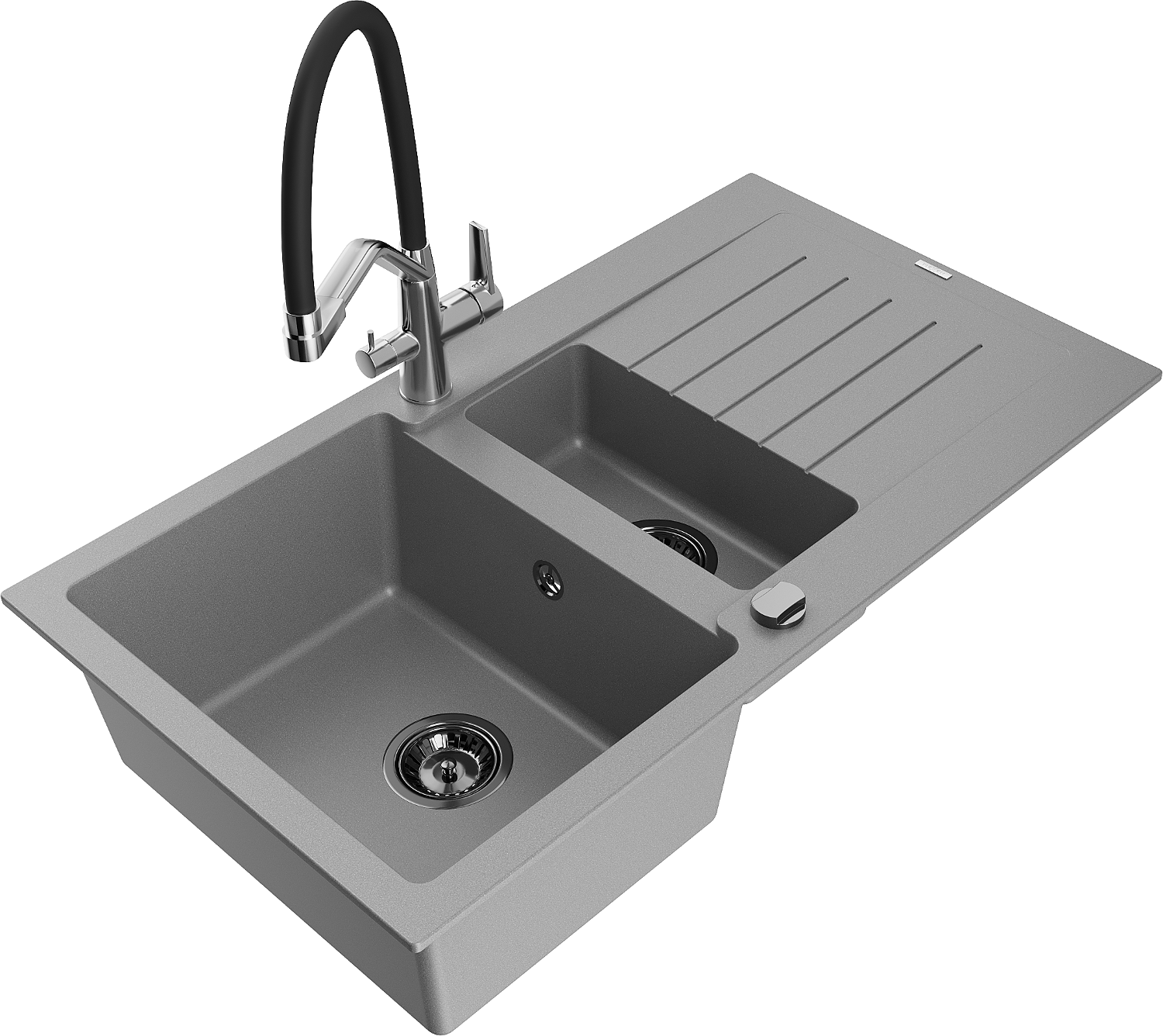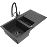 Mexen Matias granitový dřez 1,5-komorový s odkapávačem a kuchyňskou baterií Duo, šedý - 6502-71-671701-07-B