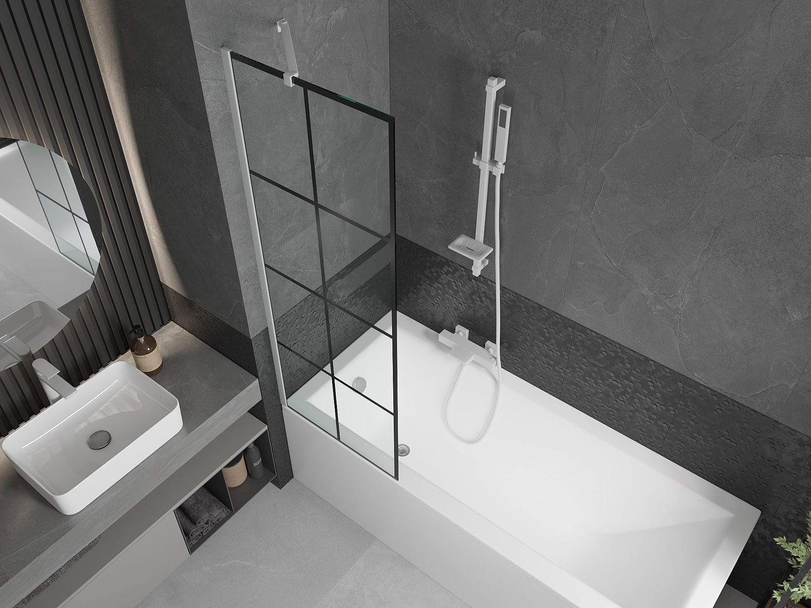 Účinná ochrana před rozléváním vody během koupání. Paraván má těsnění, která se ideálně přizpůsobují skleněné desce a okraji vany. Funkční řešení zajišťující bezpečnost a snadnou údržbu čistoty.