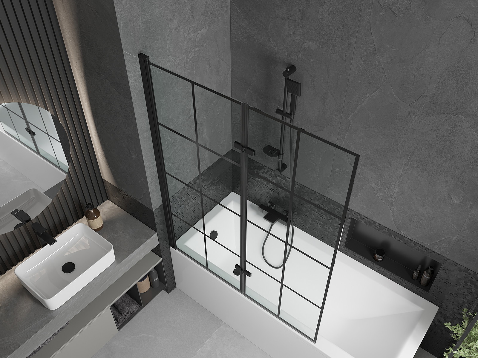 • Mexen Castor vanová zástěna 2 křídla 120 x 150 cm, Černá vzor, Černá - 892-120-002-70-77