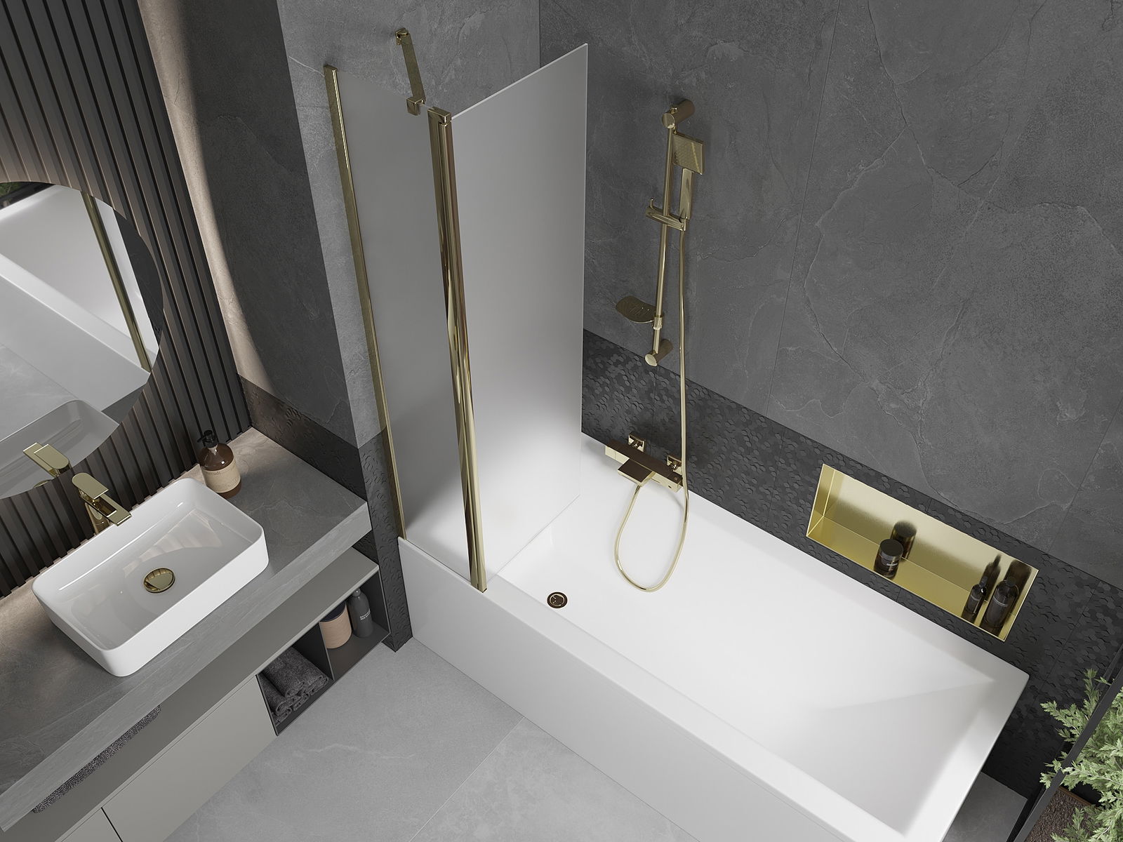 Paraván má jedno pohyblivé křídlo s možností složení. Takové řešení umožňuje ušetřit více místa v koupelně a umožňuje volné využívání zbývajícího prostoru, když nevyužíváme koupací zónu.