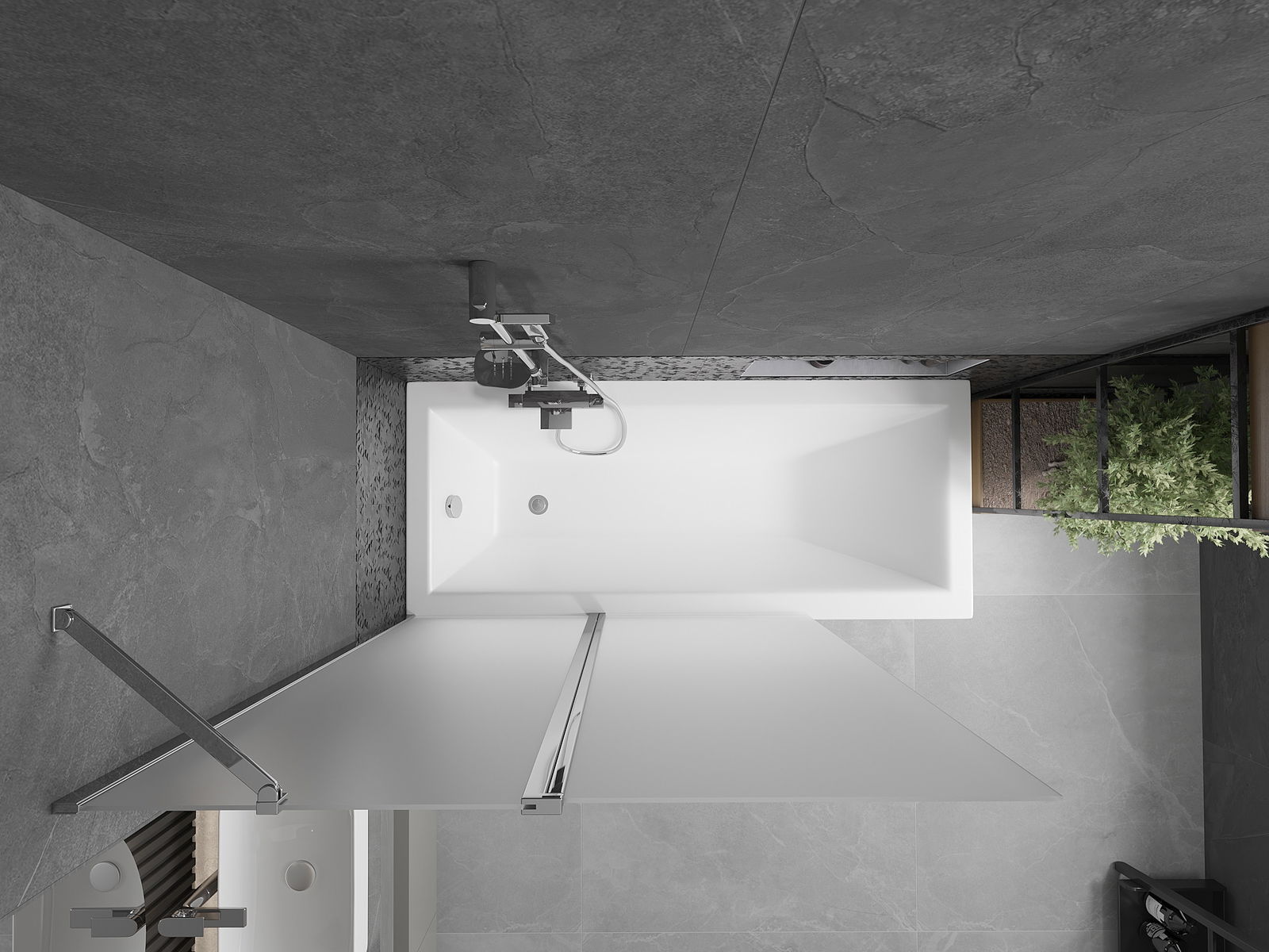 Paraván má jedno pohyblivé křídlo s možností složení. Takové řešení umožňuje ušetřit více místa v koupelně a umožňuje volné využívání zbývajícího prostoru, když nevyužíváme koupací zónu.