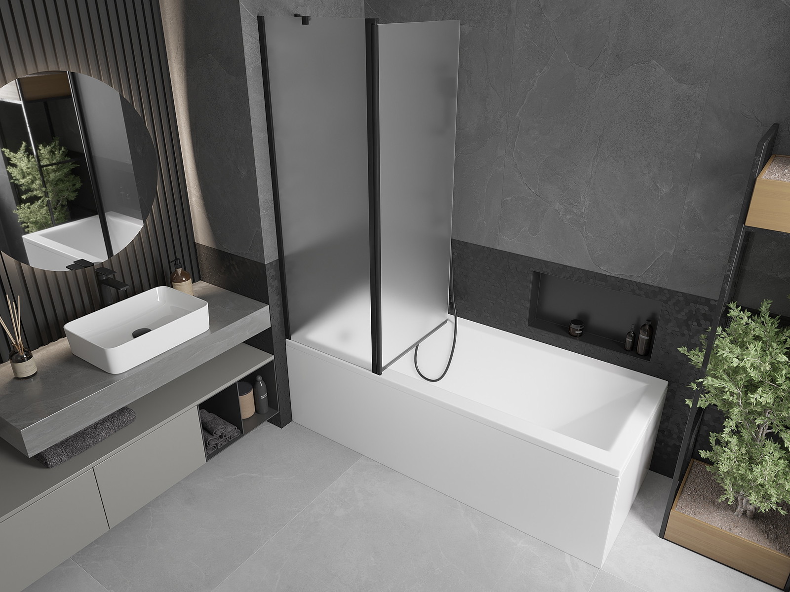 Paraván má jedno pohyblivé křídlo s možností složení. Takové řešení umožňuje ušetřit více místa v koupelně a umožňuje volné využívání zbývajícího prostoru, když nevyužíváme koupací zónu.