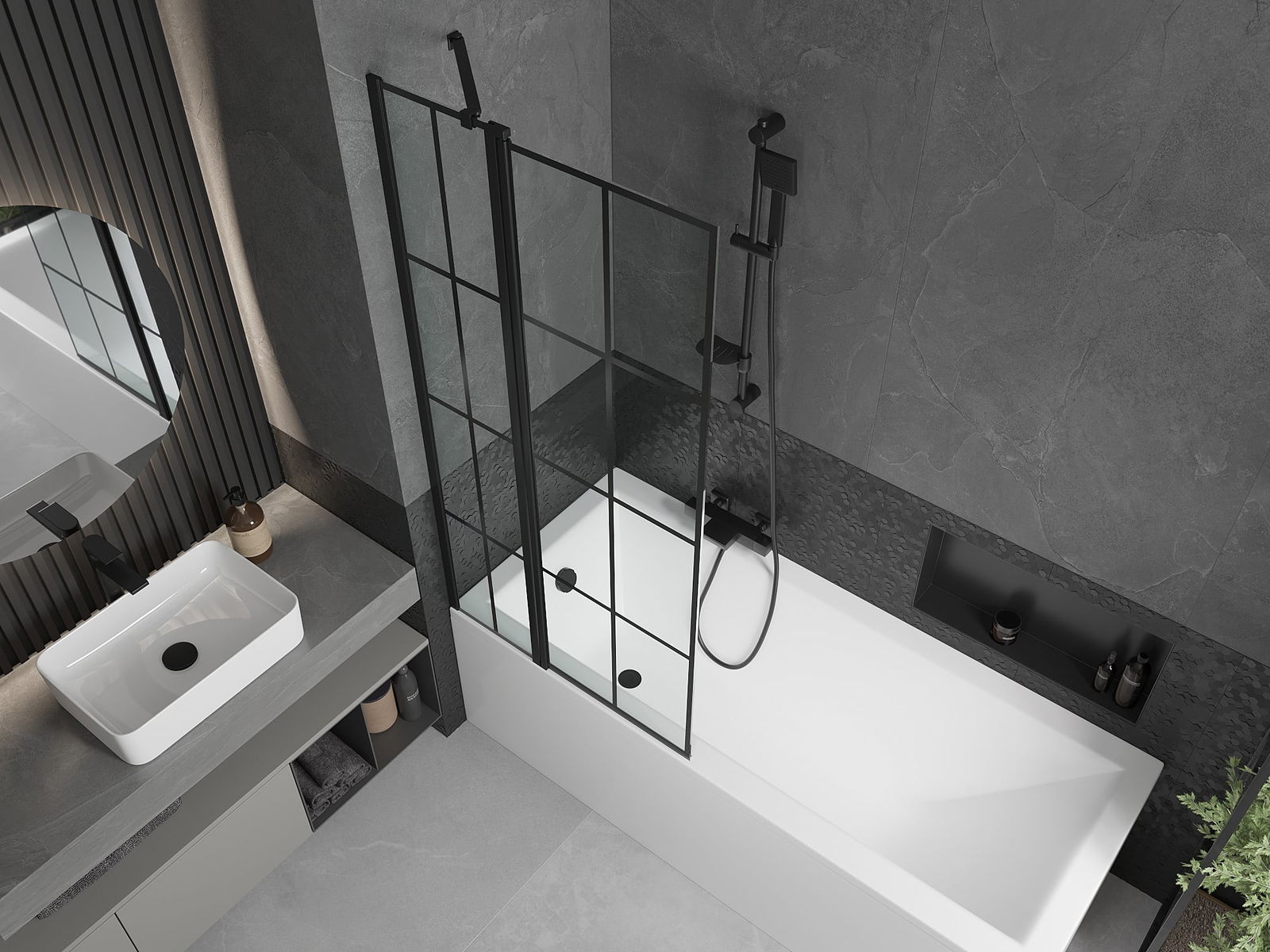 Paraván má jedno pohyblivé křídlo s možností složení. Takové řešení umožňuje ušetřit více místa v koupelně a umožňuje volné využívání zbývajícího prostoru, když nevyužíváme koupací zónu.