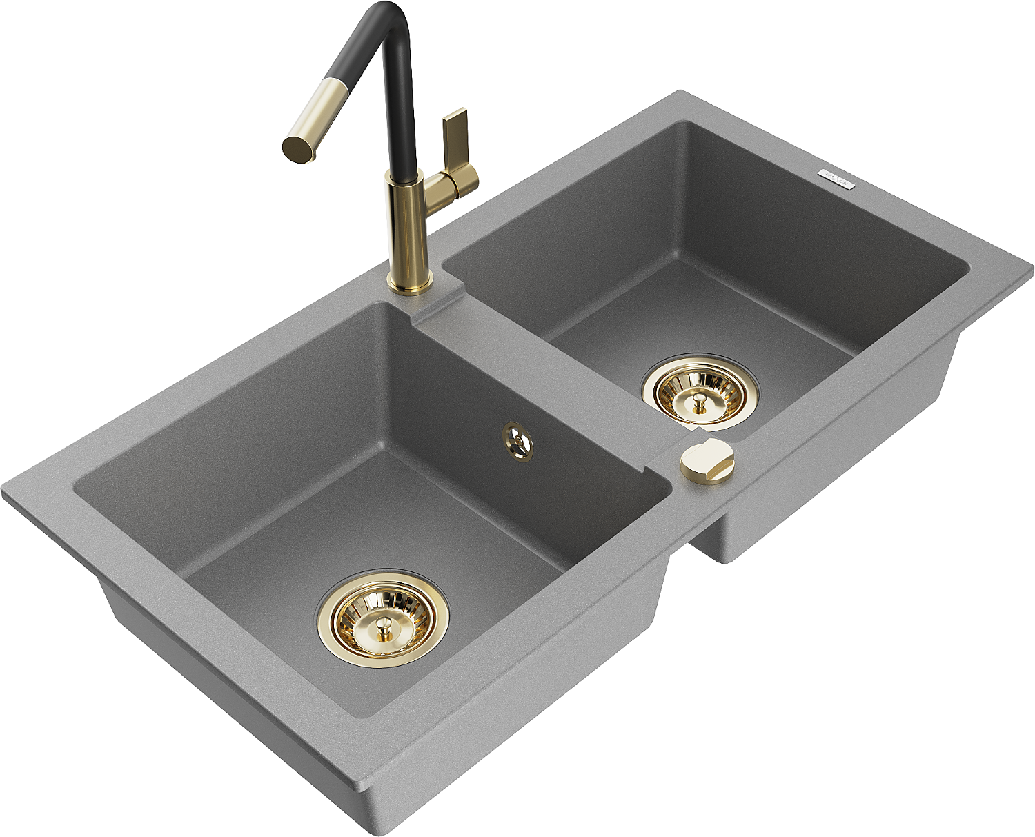 Mexen Mario granitový dřez dvoukomorový s kuchyňskou baterií Flora, šedý - 6504-71-670401-57-G
