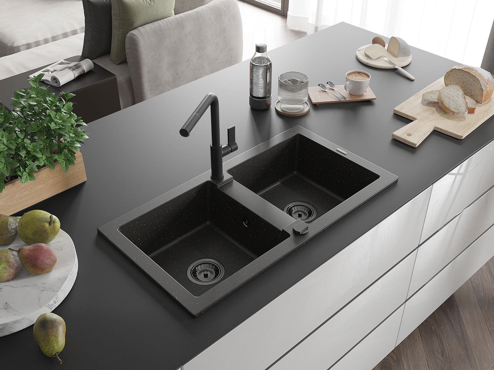 Dřez byl vyroben z vysoce kvalitního granitu. Představuje elegantní a především praktický doplněk každé kuchyně, bez ohledu na její styl. Vysoká kvalita a trvanlivost granitu zajišťují dlouholeté používání.
