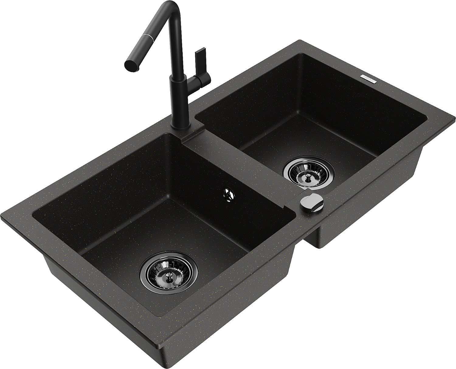 Mexen Mario žulový dřez 2-komorový s kuchyňskou baterií Flora, černý/zlatý metalik - 6504-75-670401-70-B