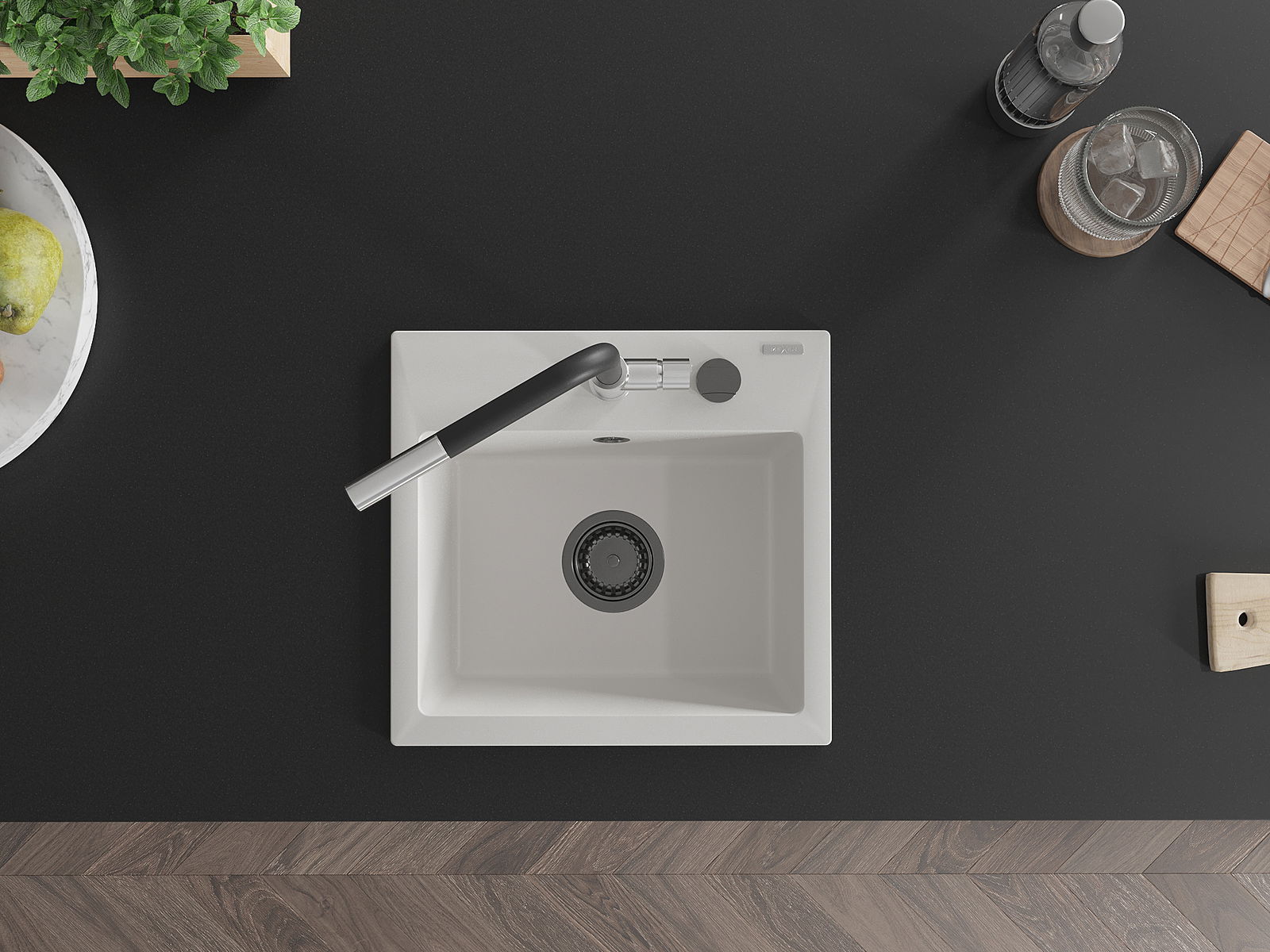 Povrch dřezu je odolný proti skvrnám a zabarvení, což usnadňuje jeho čištění a zachovává jeho barvu po dlouhou dobu používání. Estetický a praktický doplněk každé kuchyně.