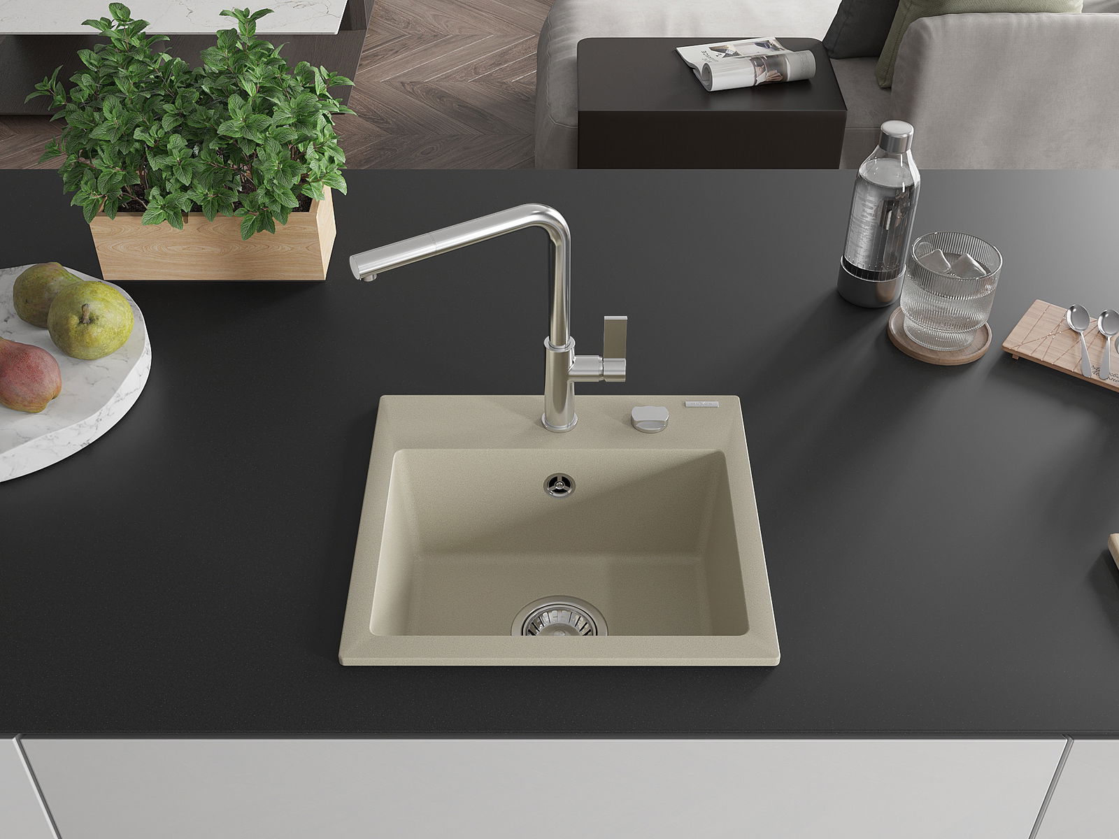 Dřez byl vyroben z vysoce kvalitního granitu. Představuje elegantní a především praktický doplněk každé kuchyně, bez ohledu na její styl. Vysoká kvalita a trvanlivost granitu zajišťují dlouholeté používání.
