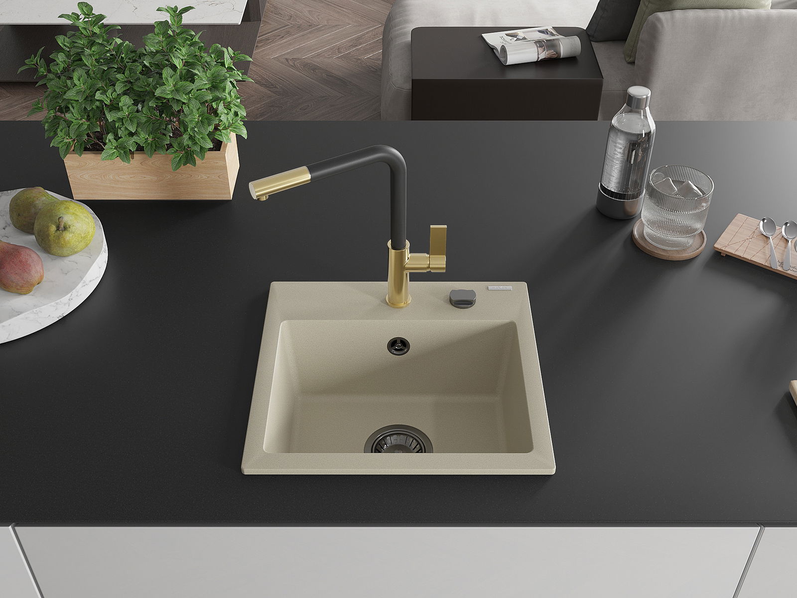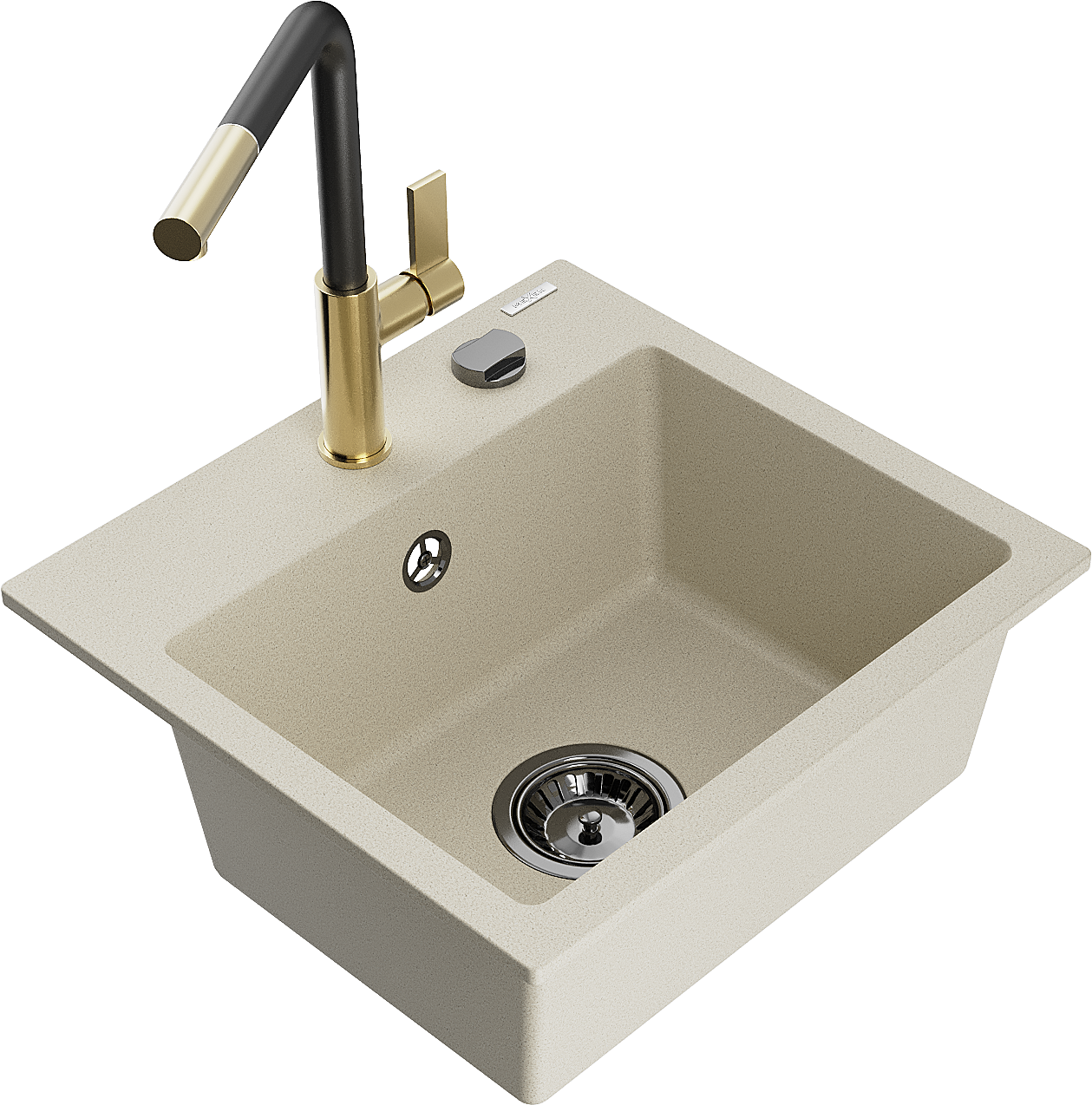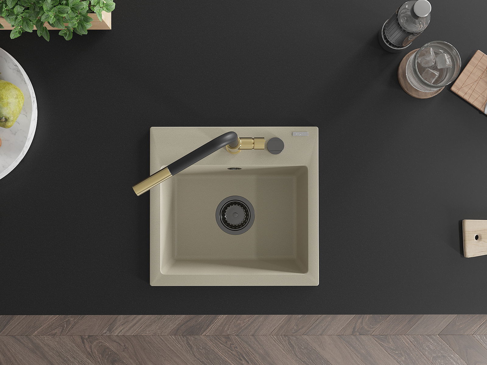 Mexen Milo granitový dřez 1-komorový s kuchyňskou baterií Flora, béžový - 6505-69-670401-57-B
