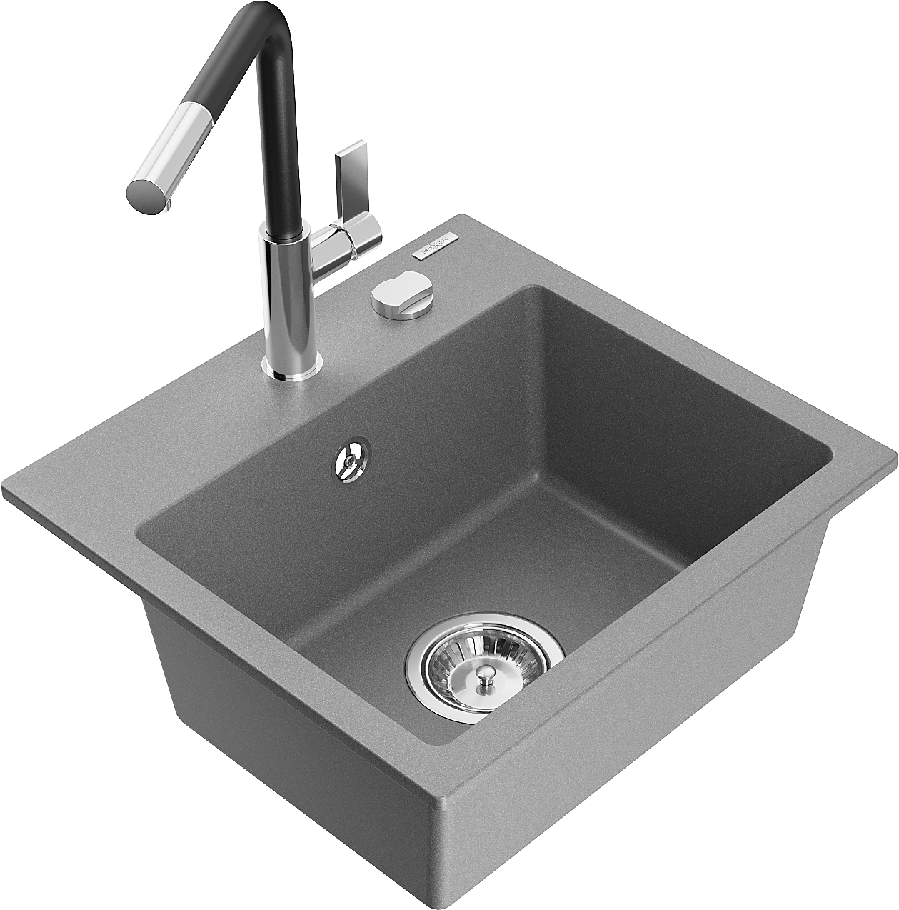 Mexen Milo granitový dřez 1-komorový s kuchyňskou baterií Flora, šedý - 6505-71-670401-07