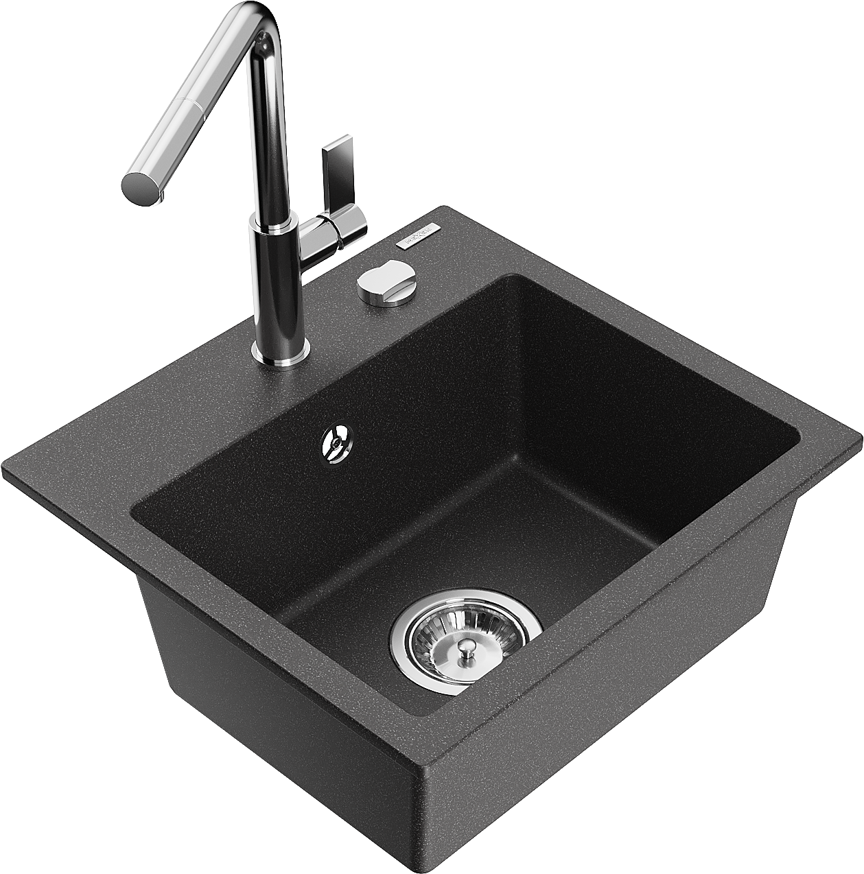 Mexen Milo granitový dřez 1-komorový s kuchyňskou baterií Flora, černý kropenatý - 6505-76-670401-00