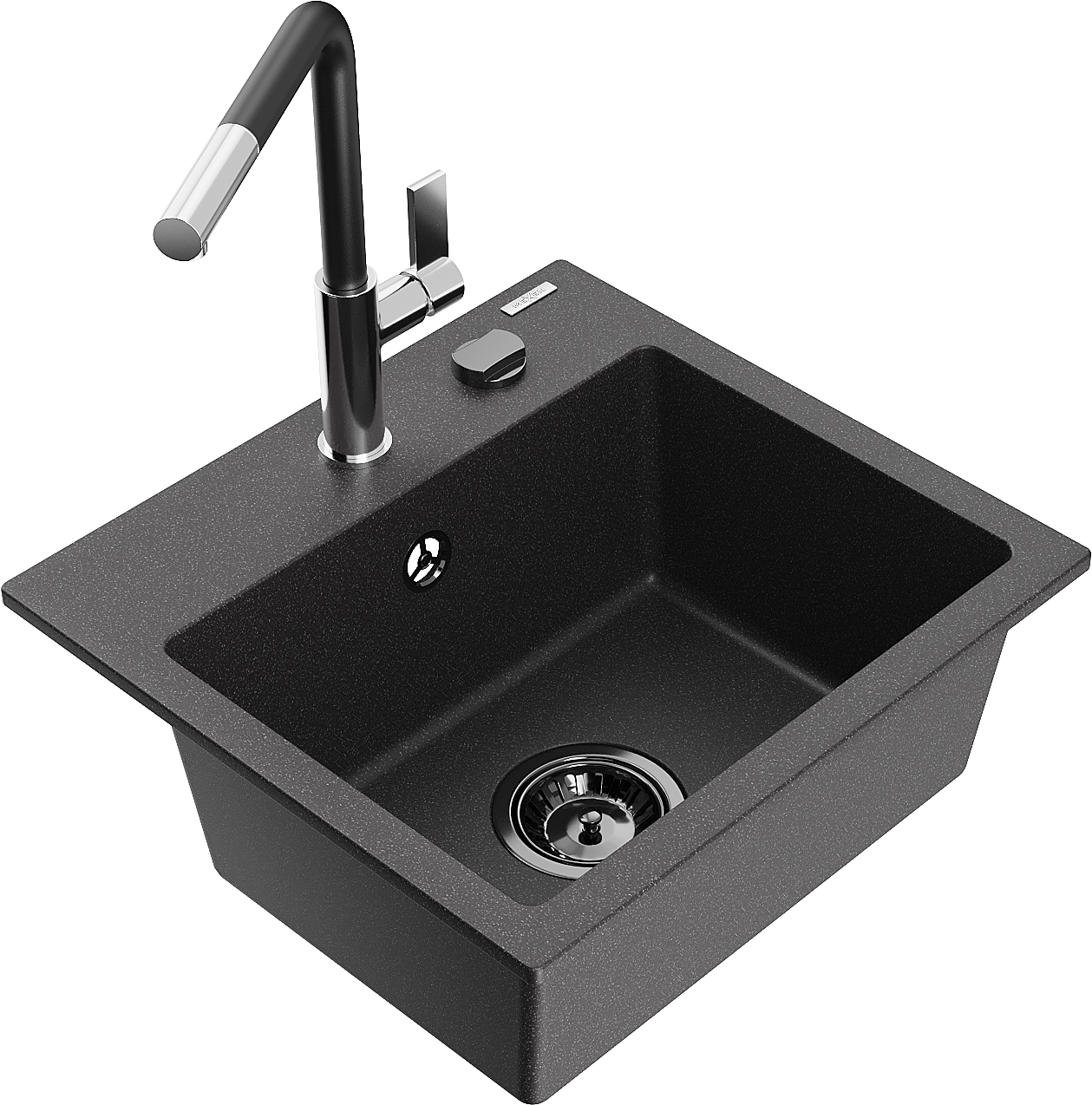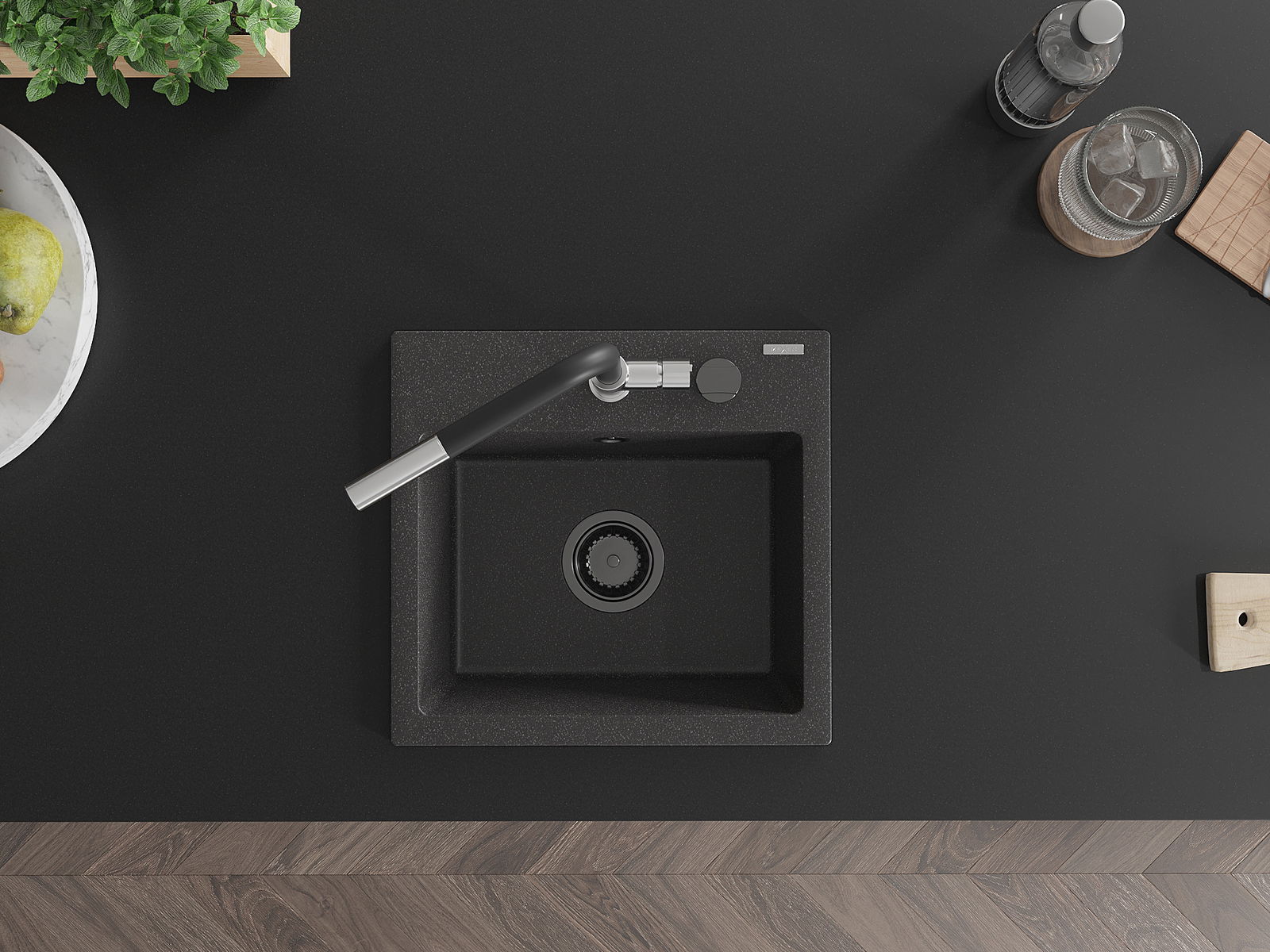 Mexen Milo granitový dřez 1-komorový s kuchyňskou baterií Flora, černý skvrnitý - 6505-76-670401-07-B