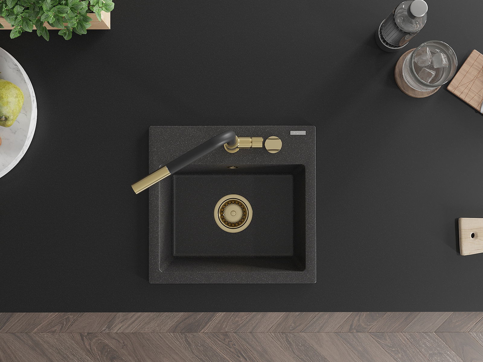 Mexen Milo granitový dřez 1-komorový s kuchyňskou baterií Flora, černý skvrnitý - 6505-76-670401-57-G