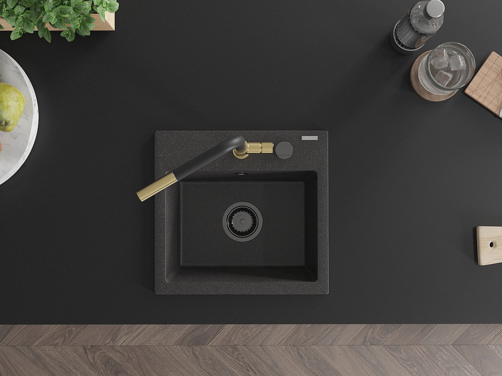 Dřez má předfrézovaný otvor o průměru 35 mm k samostatnému proražení. Může být použit například k montáži dávkovače na tekutinu, který eliminuje přítomnost plastových lahví v kuchyni a dodá jí elegantní finiš.