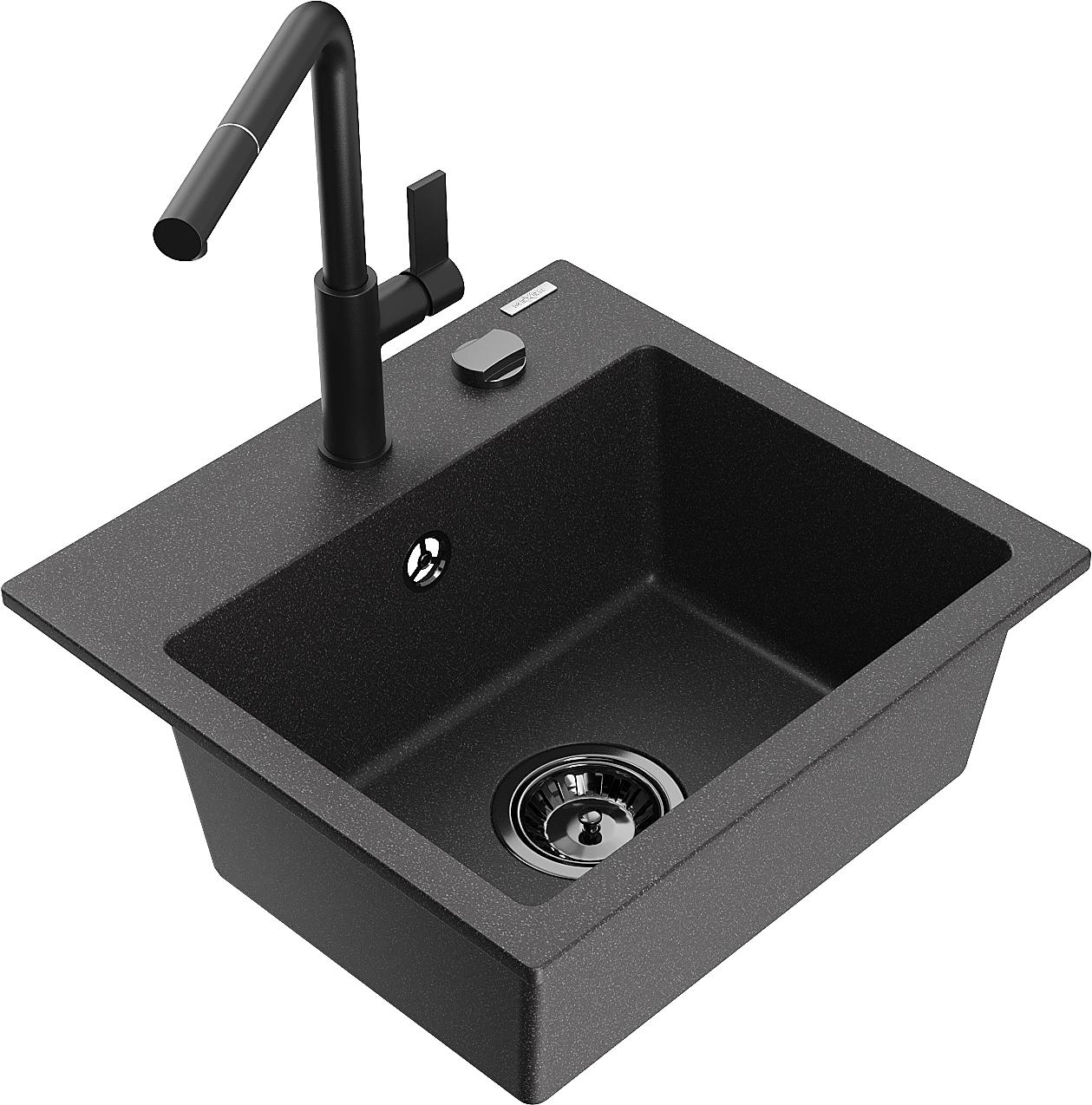 Mexen Milo granitový dřez 1-komorový s kuchyňskou baterií Flora, černý skvrnitý - 6505-76-670401-70-B