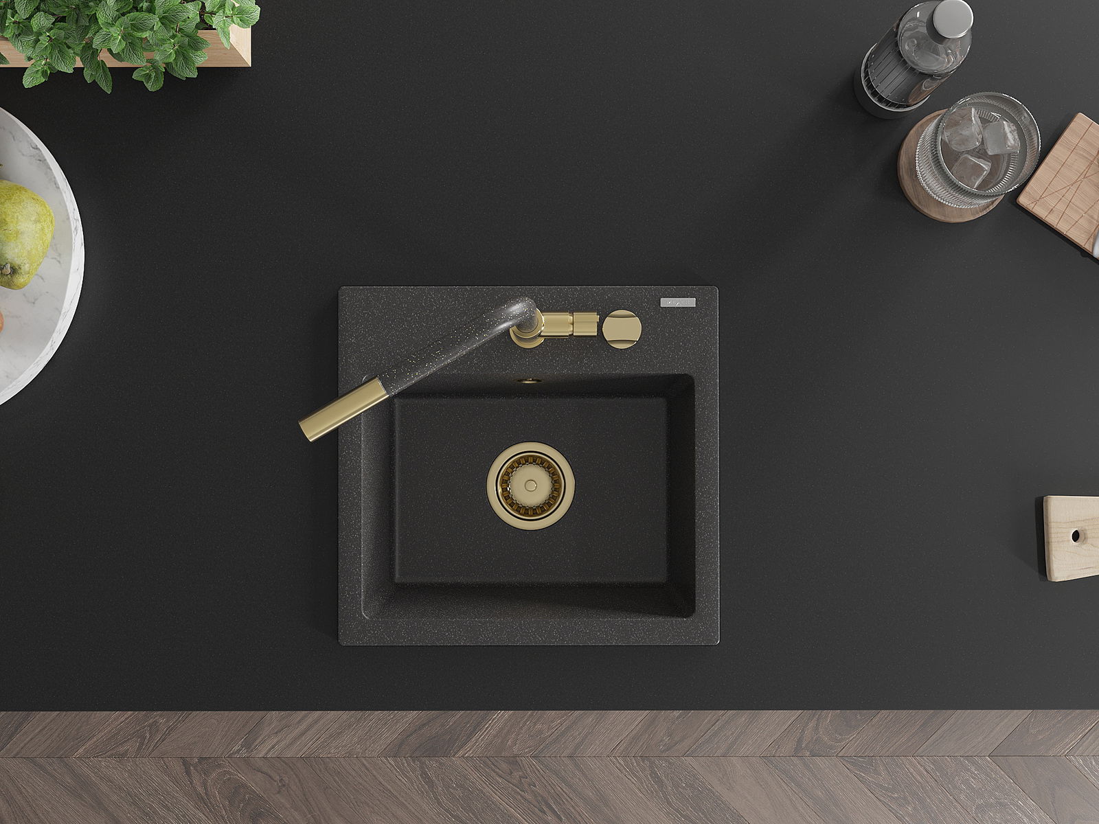 Dřez má předfrézovaný otvor o průměru 35 mm k samostatnému proražení. Může být použit například k montáži dávkovače na tekutinu, který eliminuje přítomnost plastových lahví v kuchyni a dodá jí elegantní finiš.