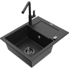 Mexen Enzo žulový dřez s 1 komorou a odkapávačem a kuchyňskou baterií Flora, černý s tečkami - 6506-76-670401-70-B