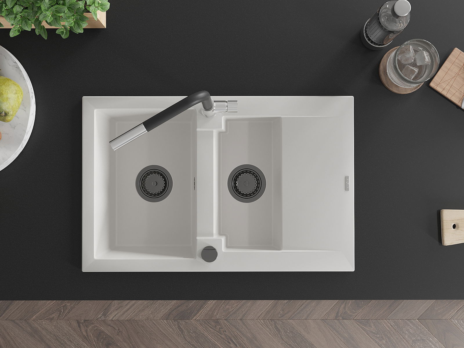 Povrch dřezu je velmi dobře vytvrzený, vyznačuje se výjimečnou odolností proti mechanickému poškození a poškrábání. Trvanlivý materiál umožňuje užívat si dobrý vzhled dřezu po mnoho let používání.