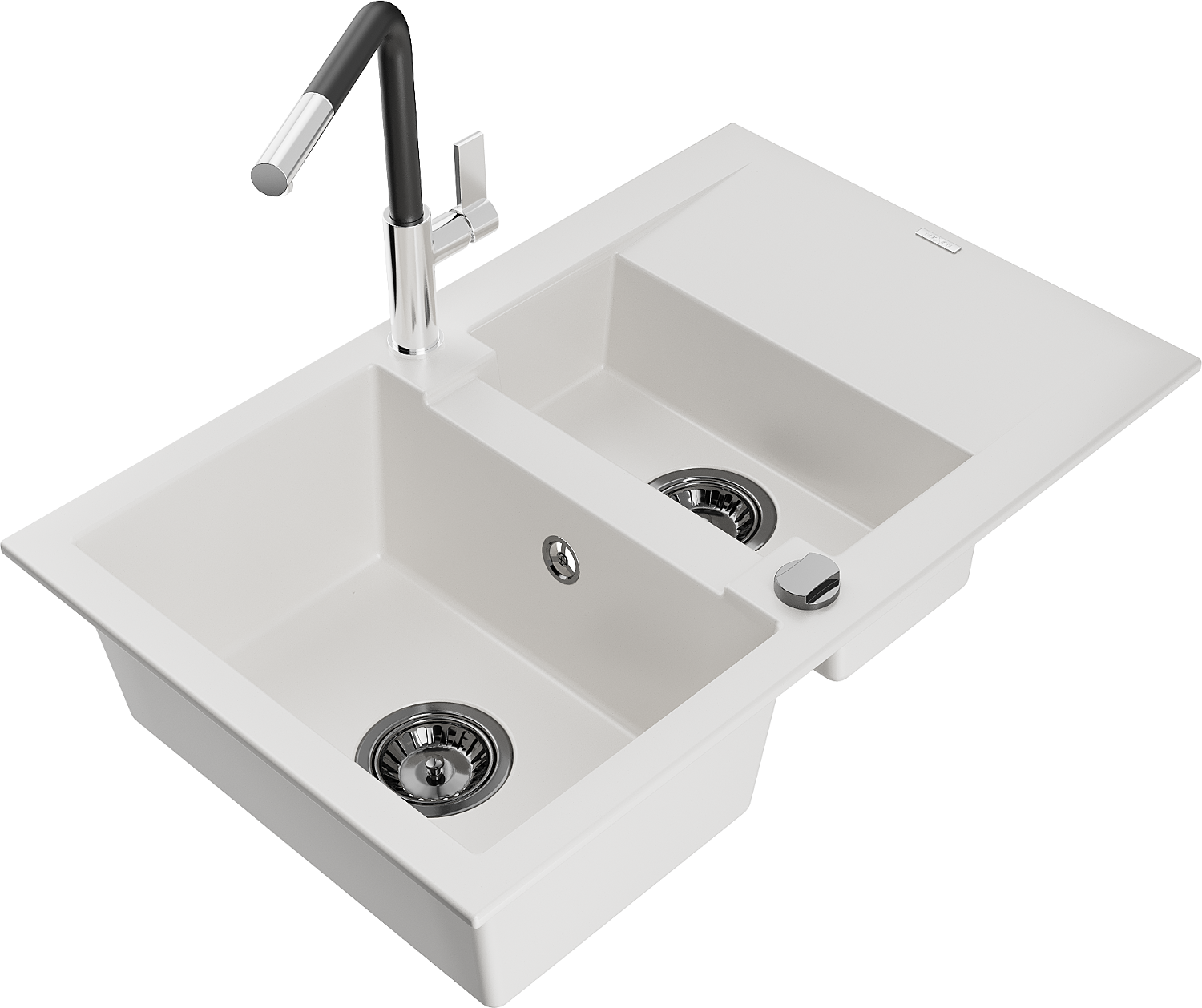 Mexen Gaspar granitový dřez 1,5-komorový s odkapávačem a kuchyňskou baterií Flora, bílý - 6507-20-670401-07-B
