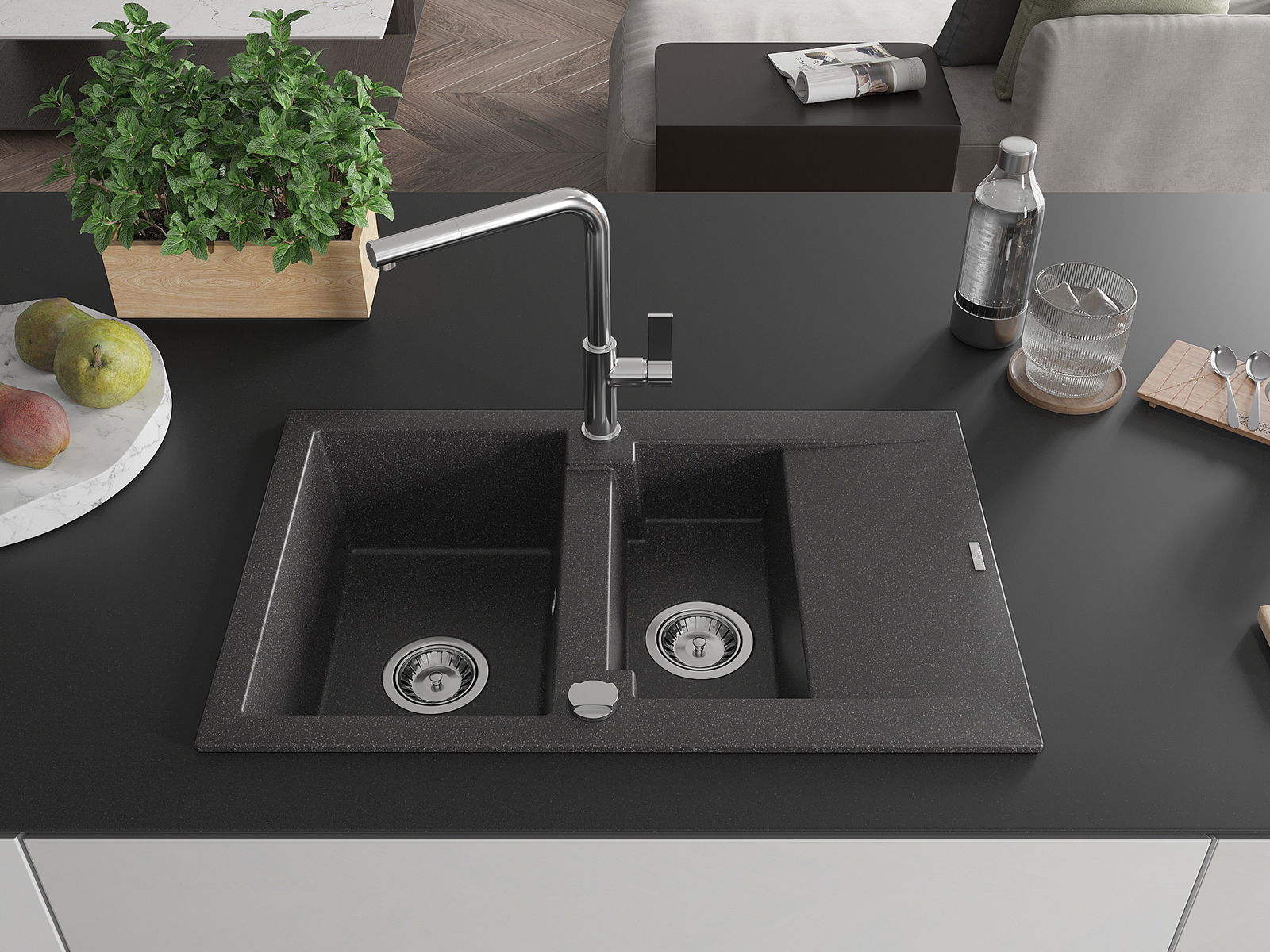 Dřez byl vyroben z vysoce kvalitního granitu. Představuje elegantní a především praktický doplněk každé kuchyně, bez ohledu na její styl. Vysoká kvalita a trvanlivost granitu zajišťují dlouholeté používání.