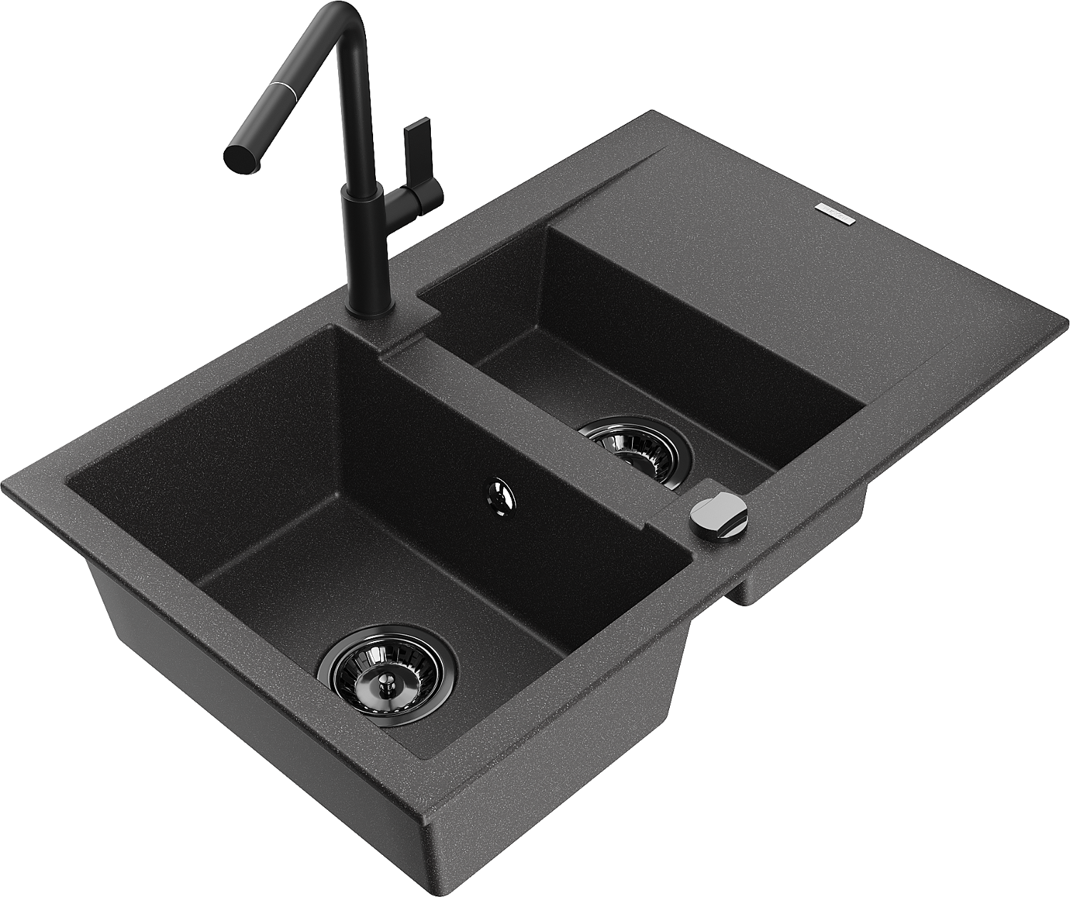 Mexen Gaspar dřez žulový 1,5-komorový s odkapávačem a kuchyňskou baterií Flora, černý se skvrnami - 6507-76-670401-70-B