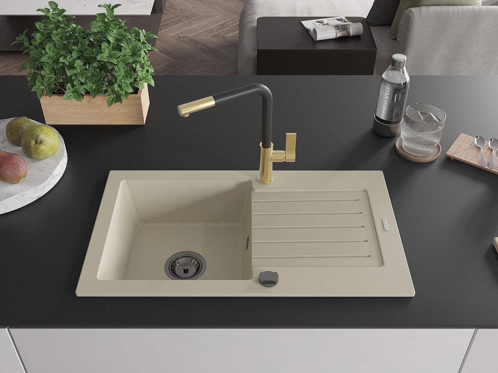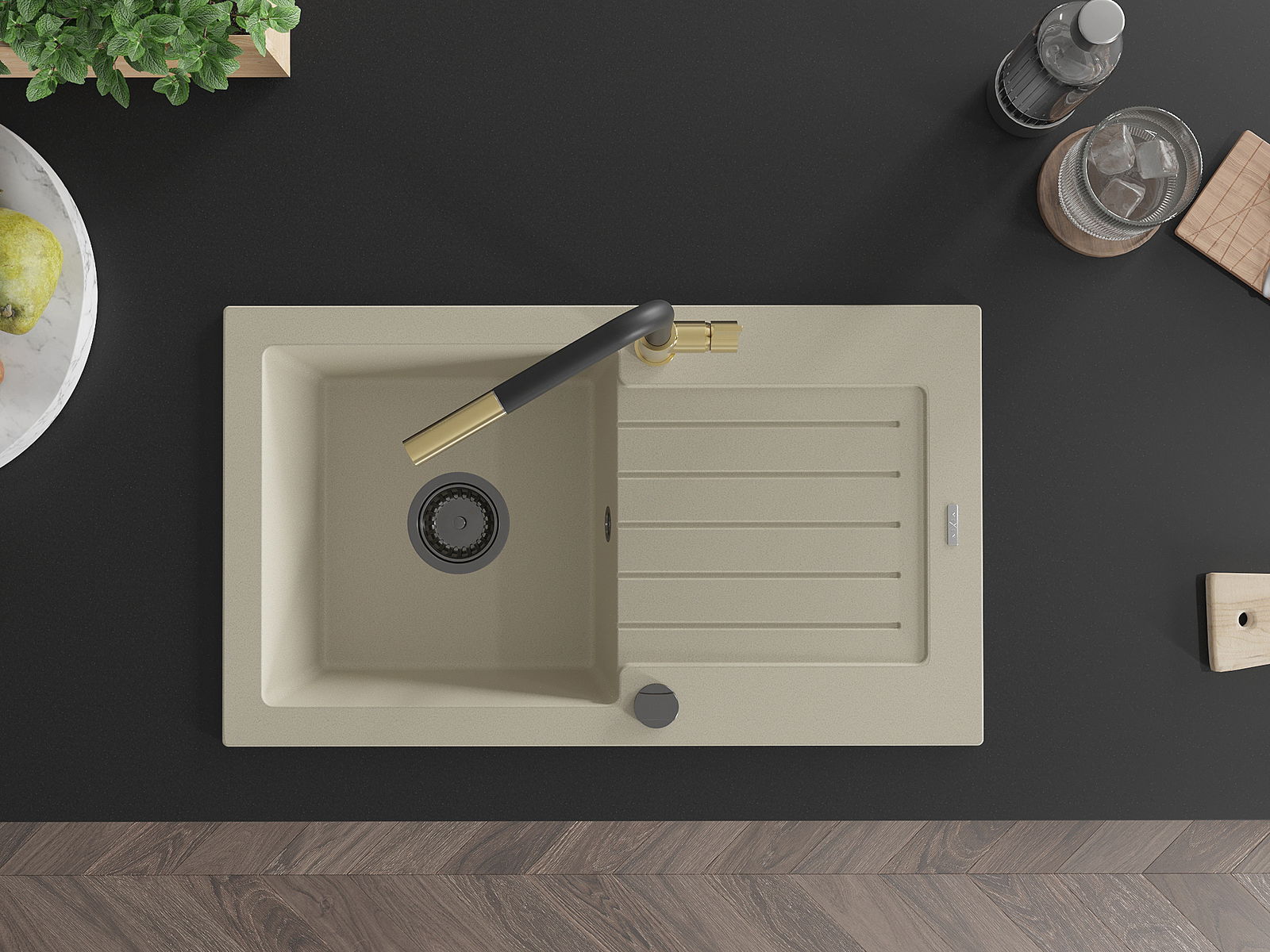 Dřez byl vyroben z vysoce kvalitního granitu. Představuje elegantní a především praktický doplněk každé kuchyně, bez ohledu na její styl. Vysoká kvalita a trvanlivost granitu zajišťují dlouholeté používání.