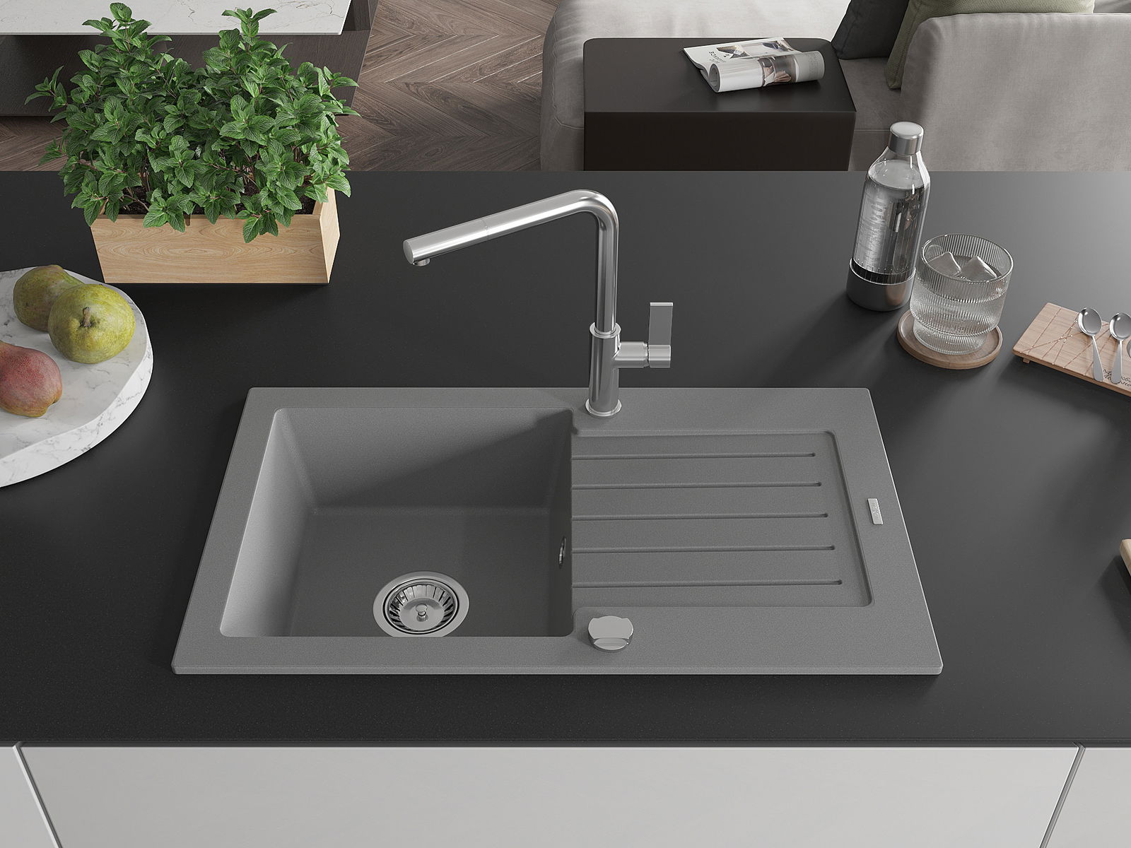 Dřez byl vyroben z vysoce kvalitního granitu. Představuje elegantní a především praktický doplněk každé kuchyně, bez ohledu na její styl. Vysoká kvalita a trvanlivost granitu zajišťují dlouholeté používání.