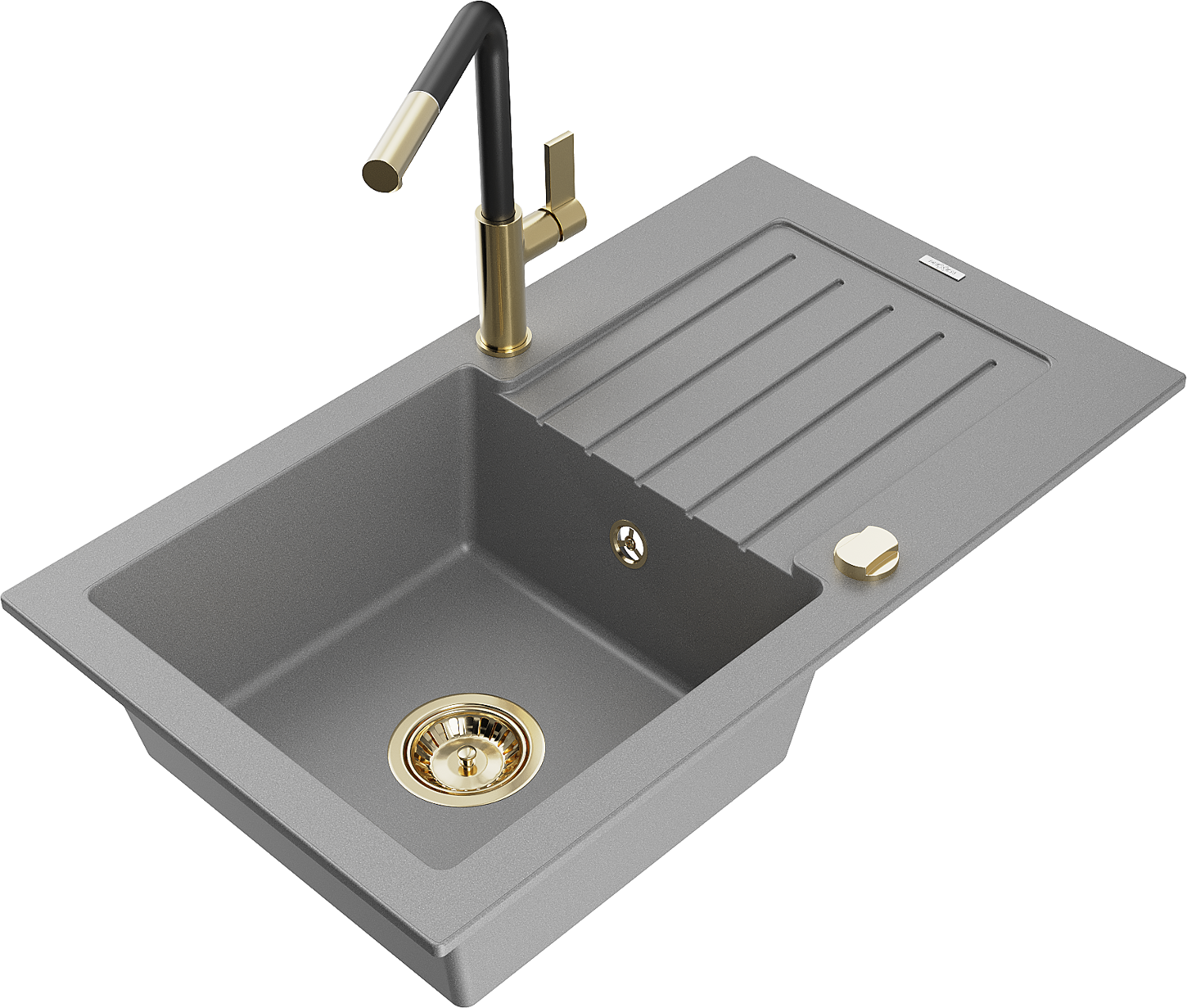 Mexen Pablo granitový dřez 1-komorový s odkapávačem a kuchyňskou baterií Flora, šedý - 6510-71-670401-57-G