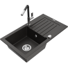 Mexen Pablo granitový dřez s 1 komorou a odkapávačem a kuchyňskou baterií Flora, černý - 6510-77-670401-07