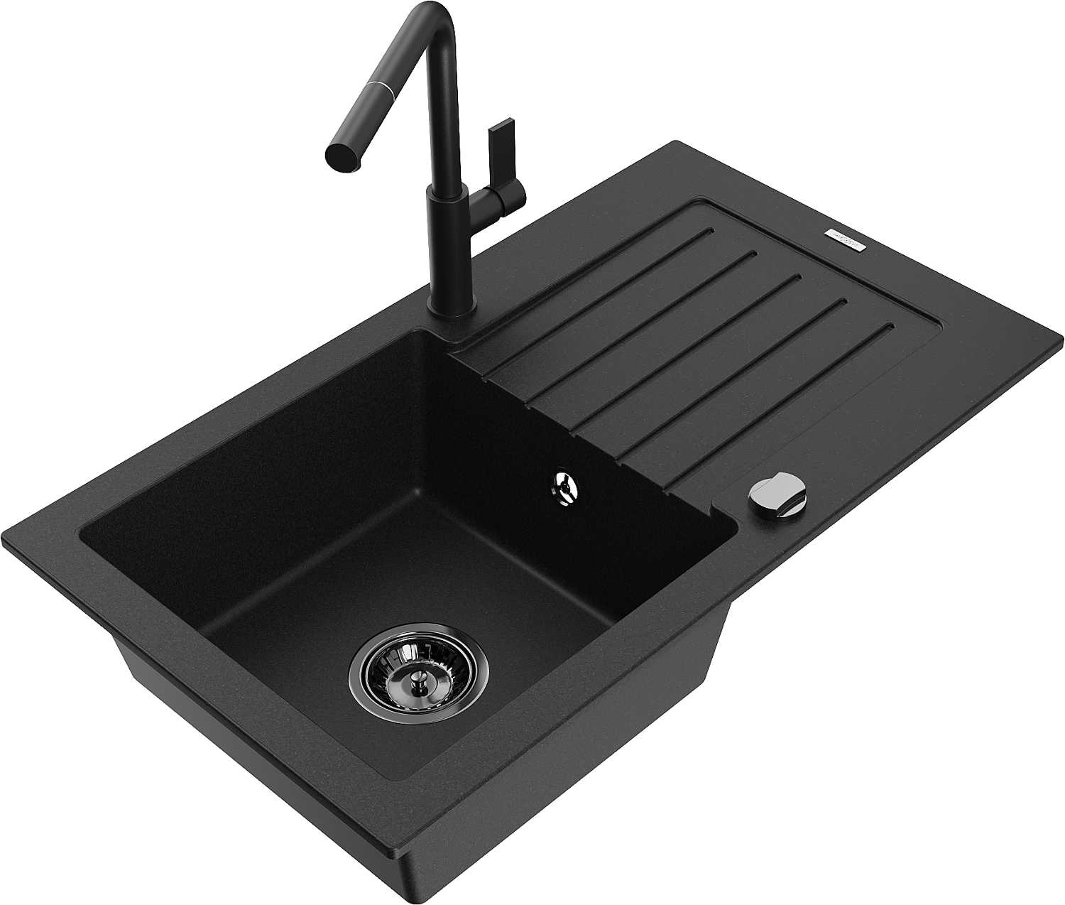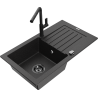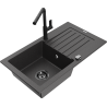 Mexen Pablo granitový dřez jednodřez s odkapávačem a kuchyňskou baterií Flora, černý - 6510-77-670401-70-B
