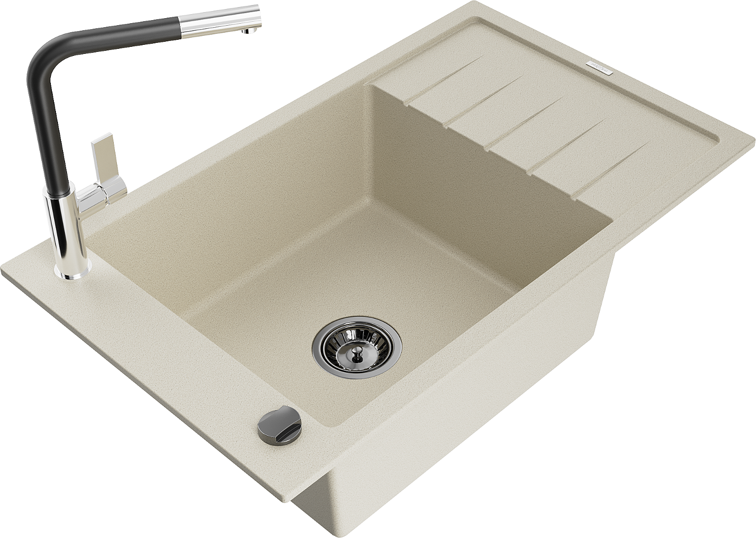 Mexen Elias granitový kuchyňský dřez s 1 komu a odkapávačem a baterií Flora, béžová - 6511-69-670401-07